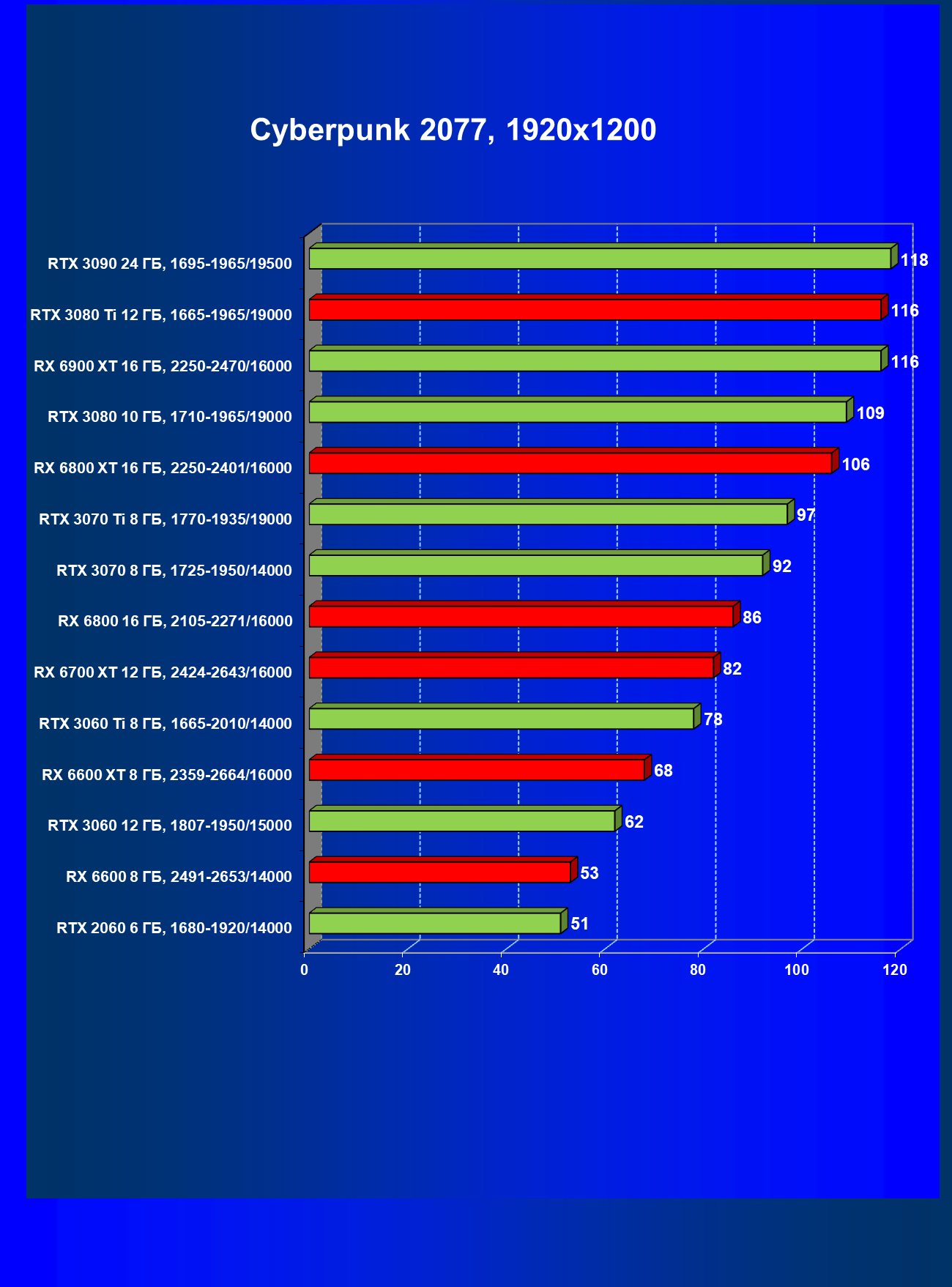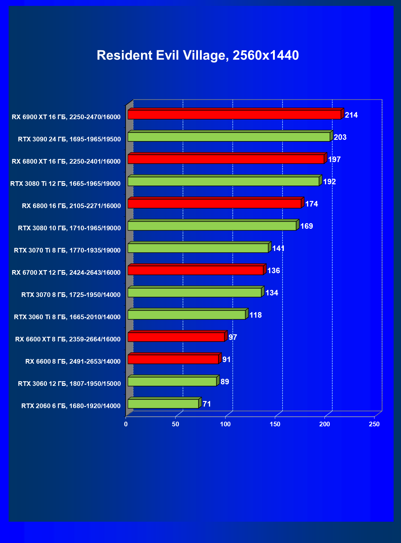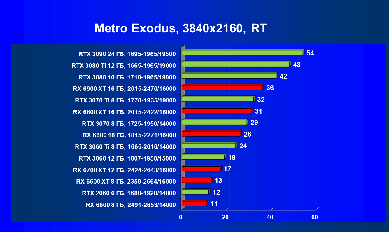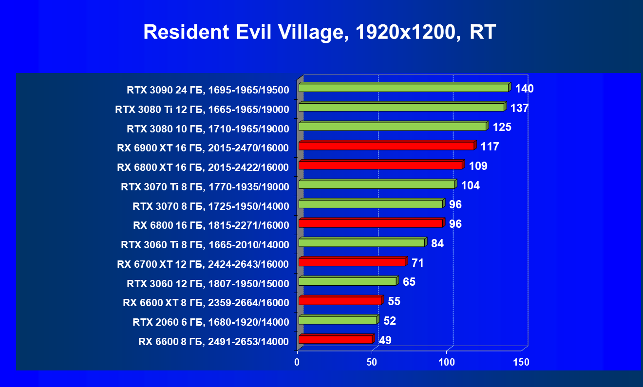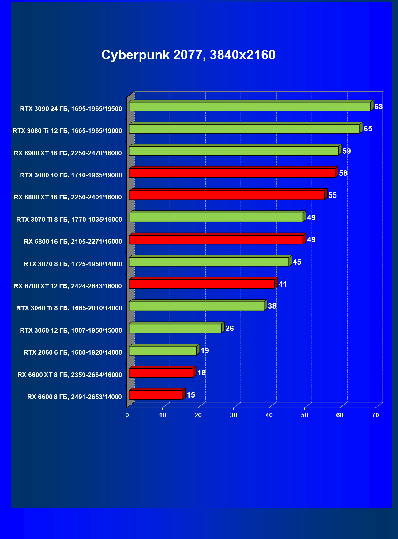 Теперь пройдемся по разрешениям без учета ценового фактора — только чистая производительность. На картинке ниже приведена производительность без RT.