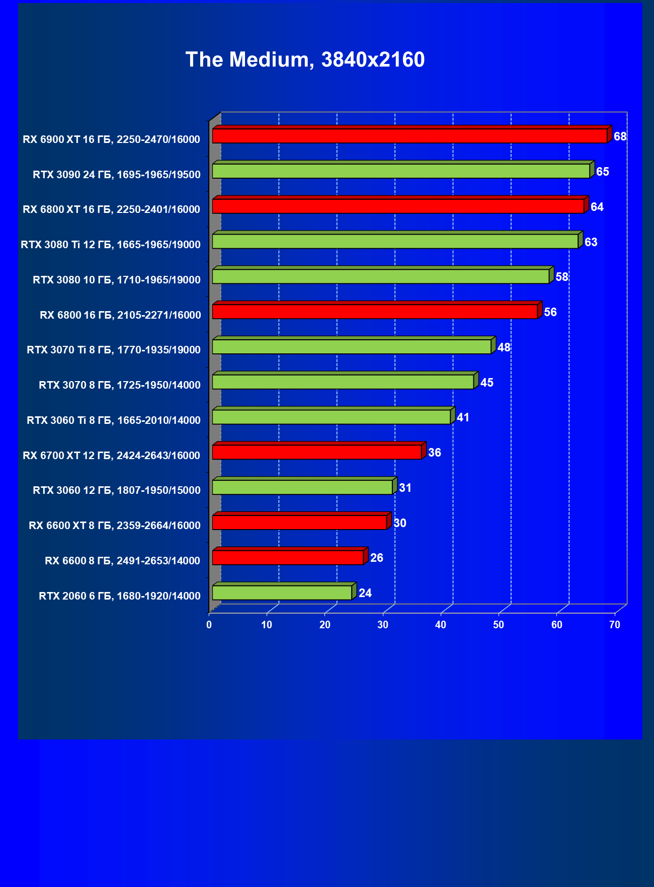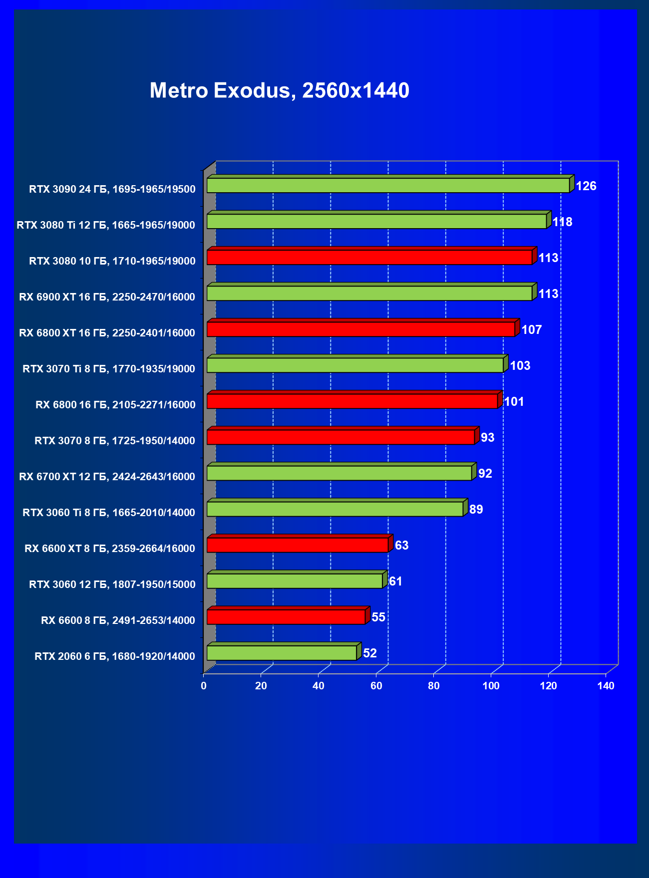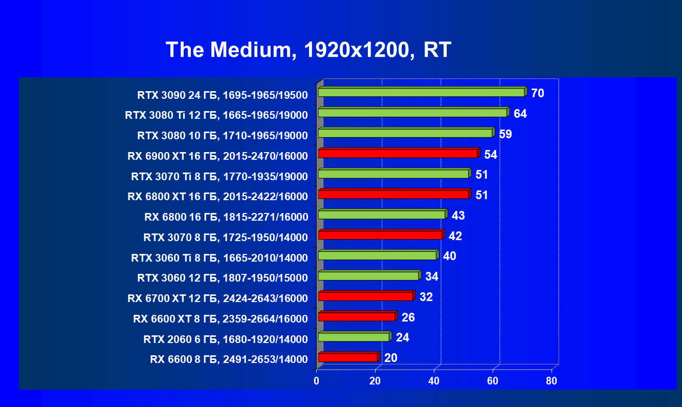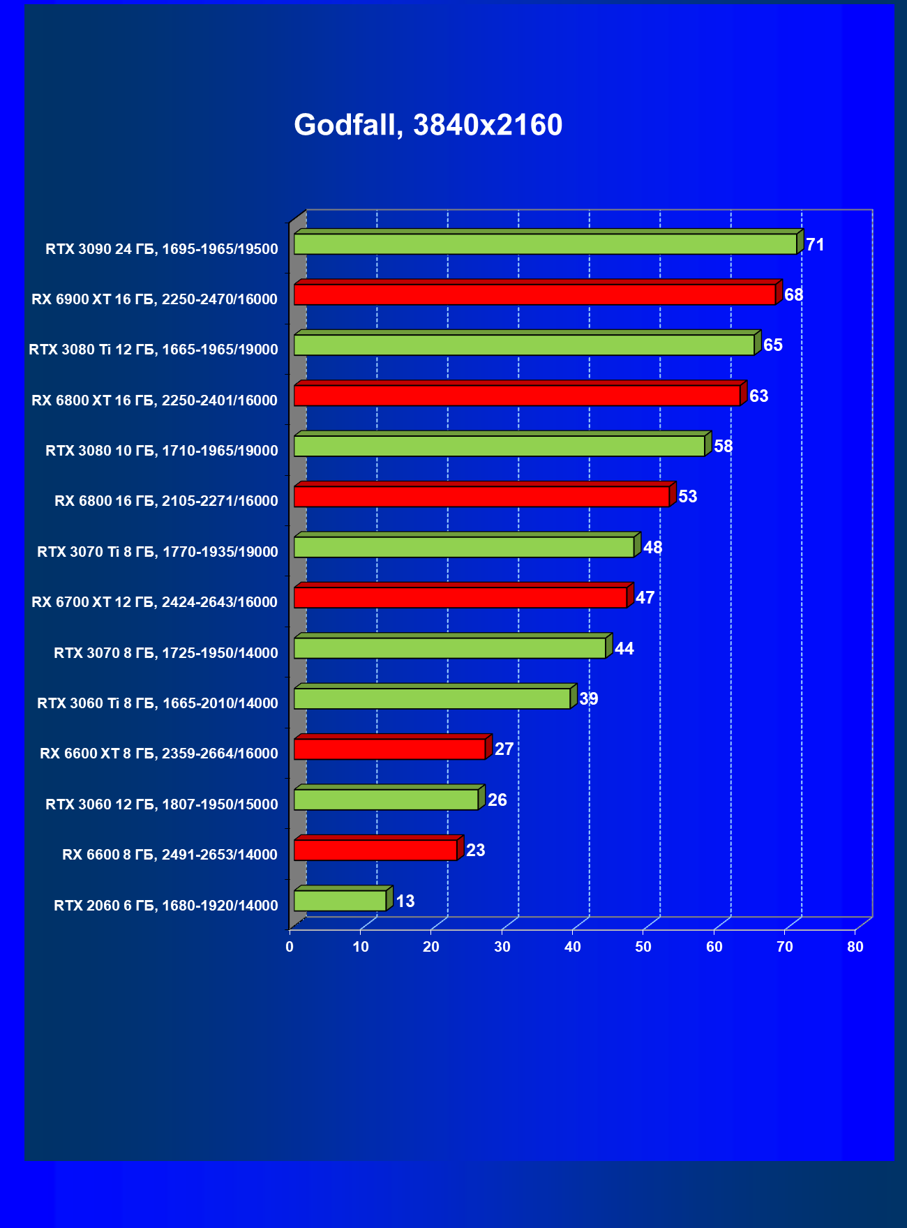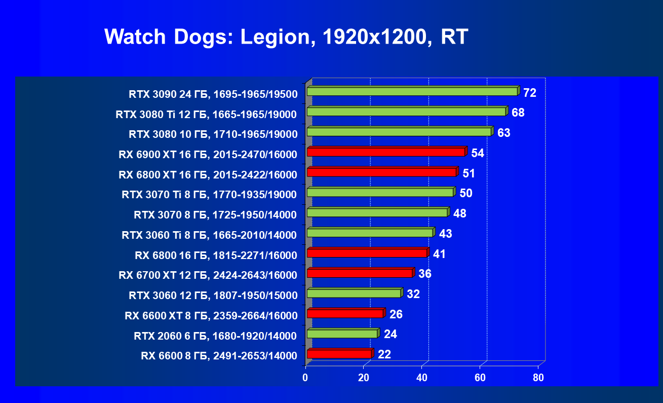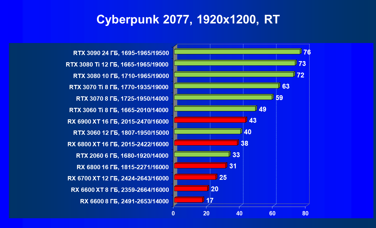 Теперь пройдемся по разрешениям без учета ценового фактора — только чистая производительность. На картинке ниже приведена производительность без RT.