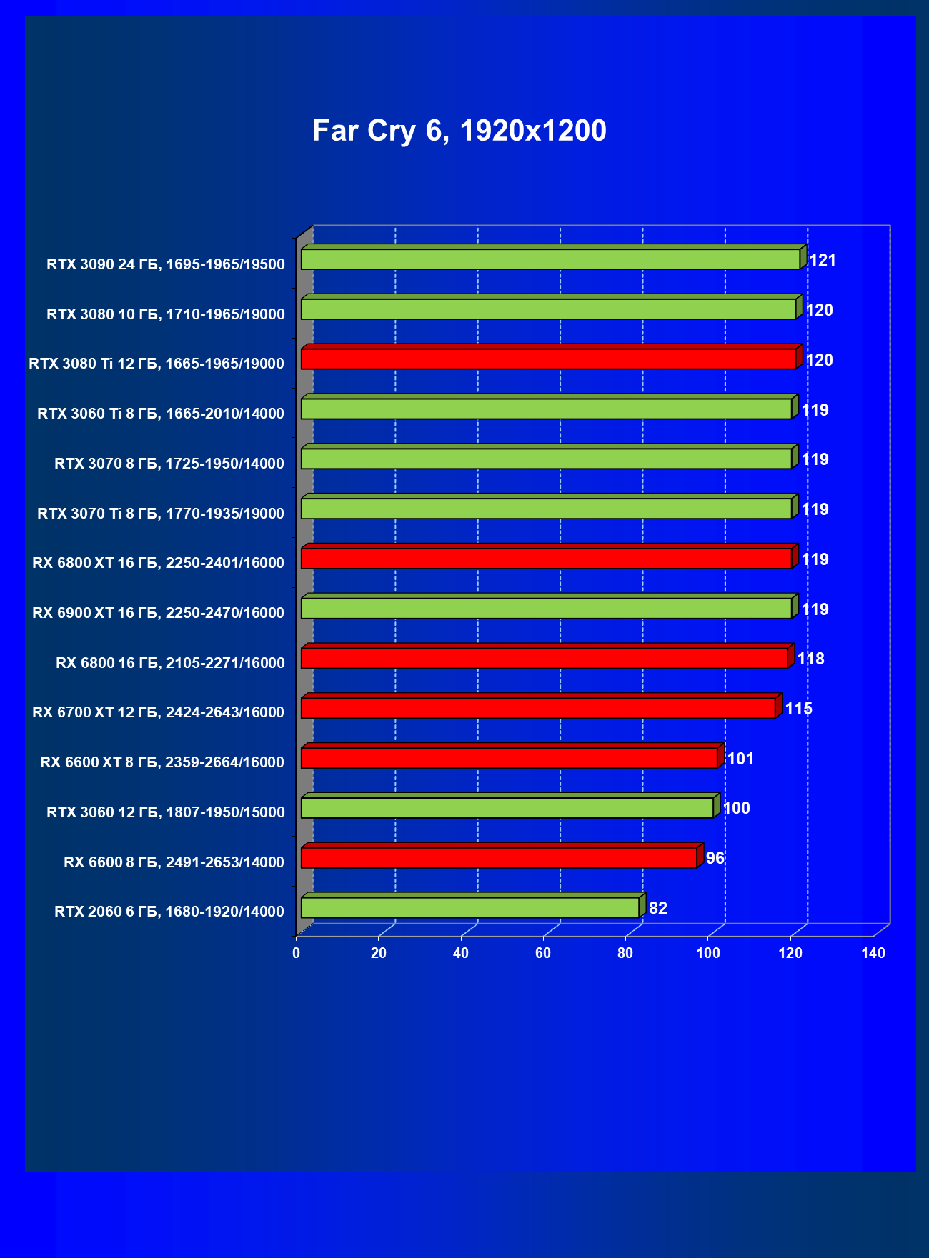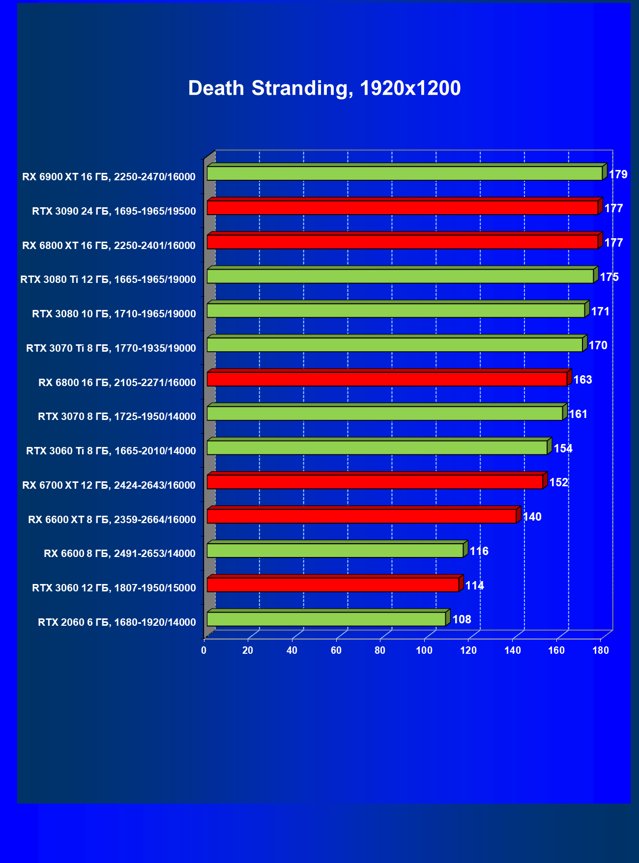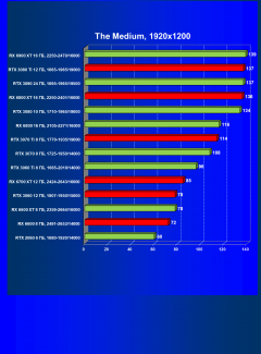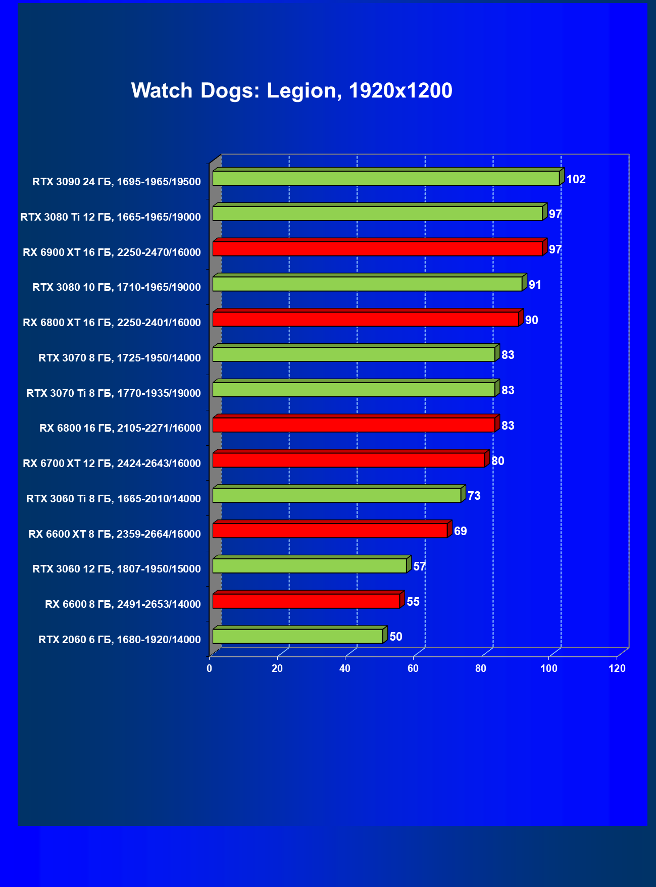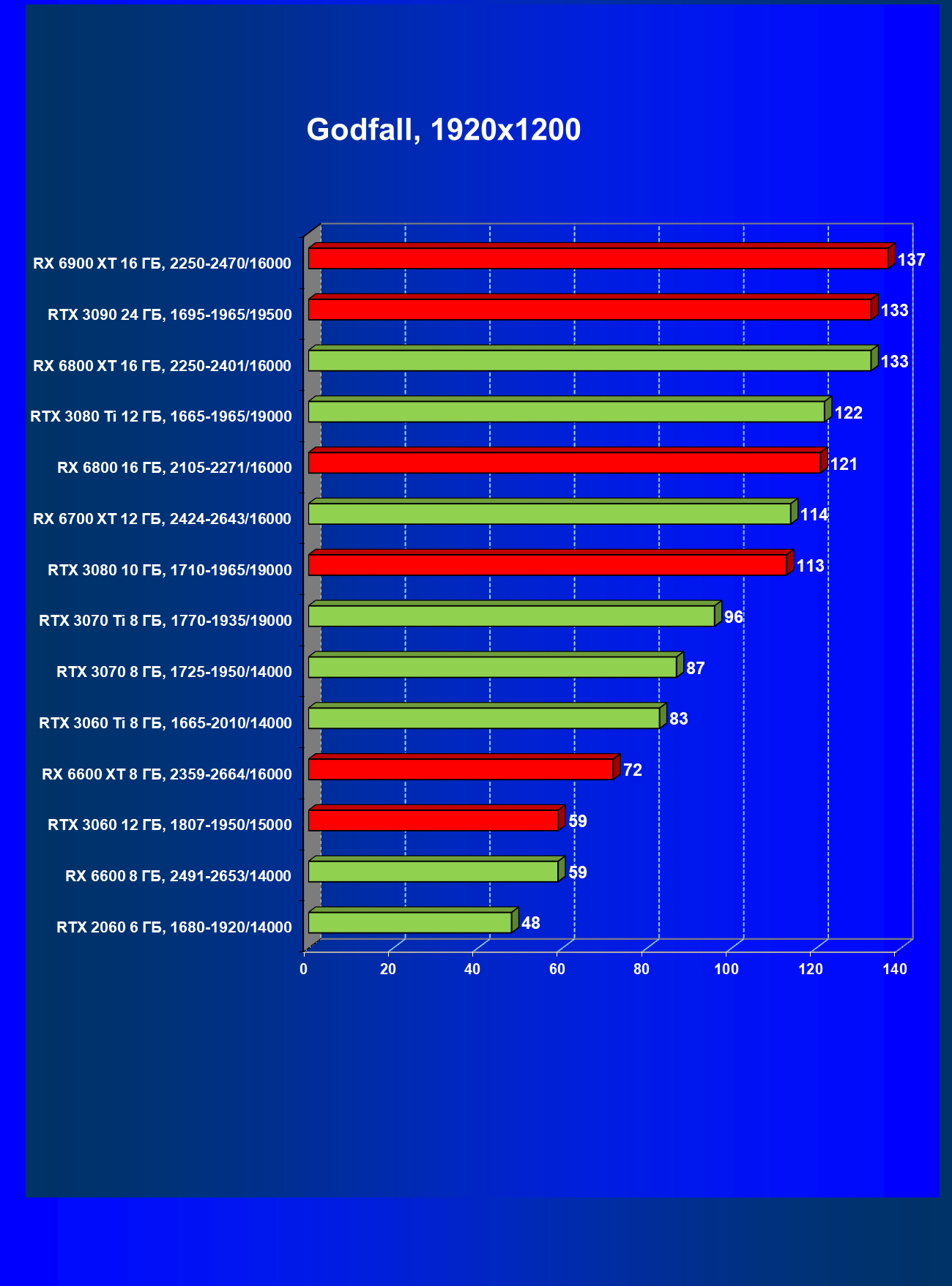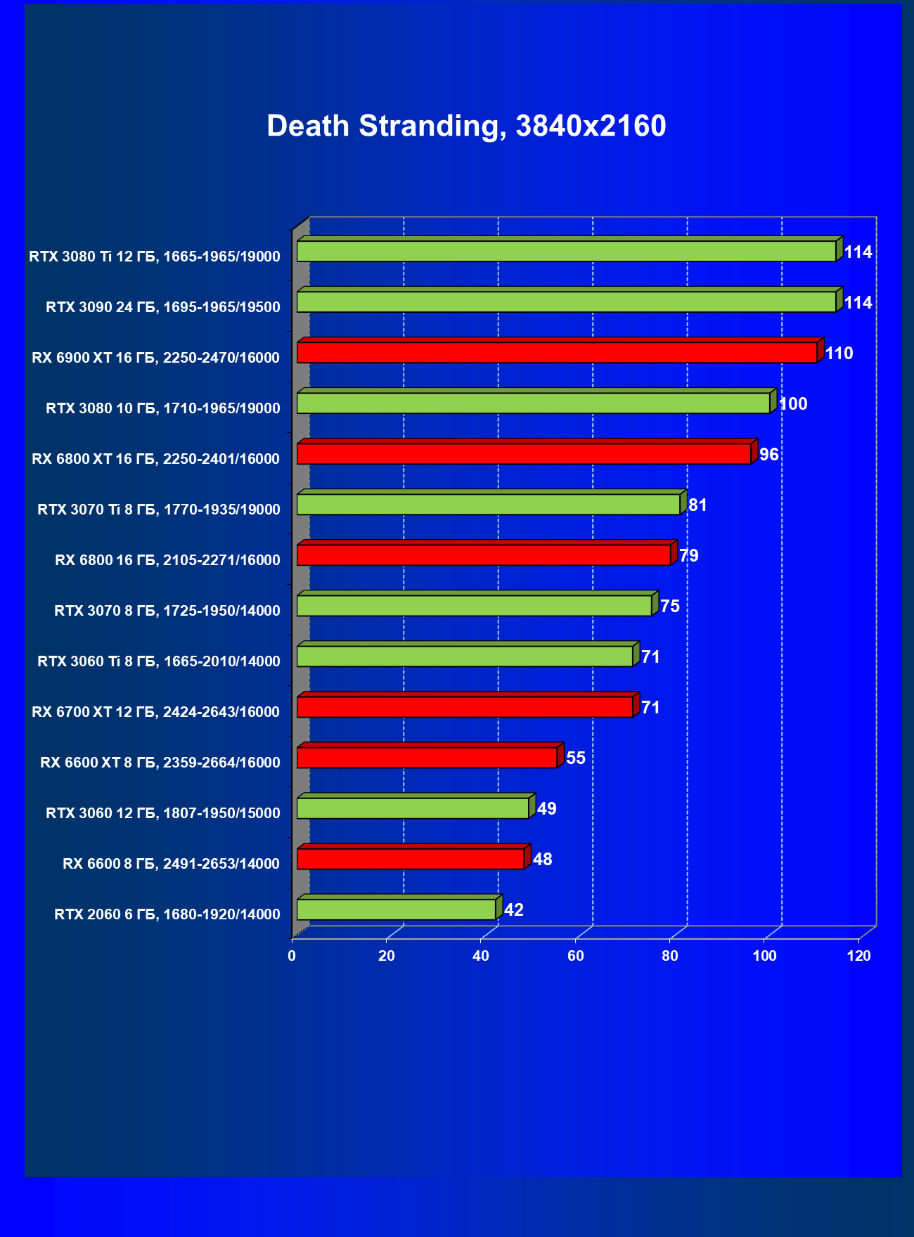 Теперь пройдемся по разрешениям без учета ценового фактора — только чистая производительность. На картинке ниже приведена производительность без RT.