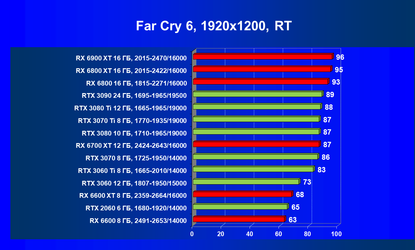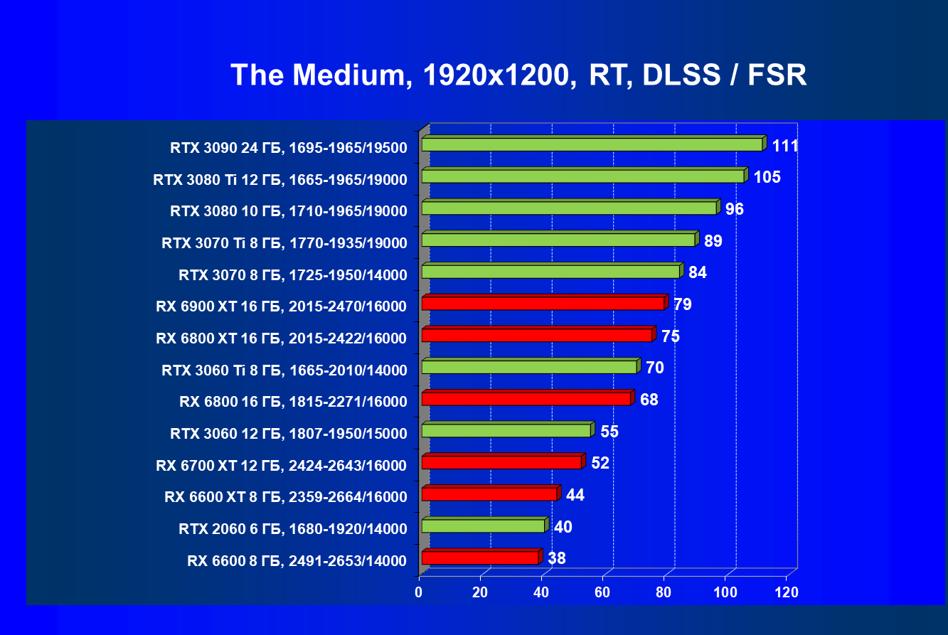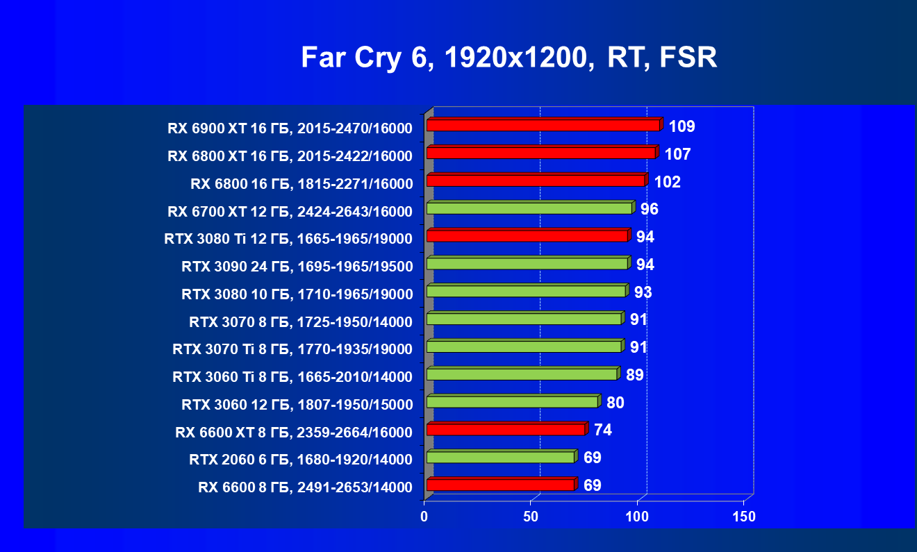 Наш подход не меняется, мы помогаем сделать выбор только по одному из критериев — по игровой производительности под Windows 10 в целом и отдельно по ценовым сегментам. Чтобы результаты были прозрачными по всему списку ускорителей, тестирование проводим в одинаковых условиях настроек на максимально возможном качестве 3D-графики в 10 играх и 3 разрешениях. Отдельно для карт, поддерживающих трассировку лучей, а также технологии масштабирования изображения Nvidia DLSS и AMD FSR), проведены тесты в соответствующих играх.
