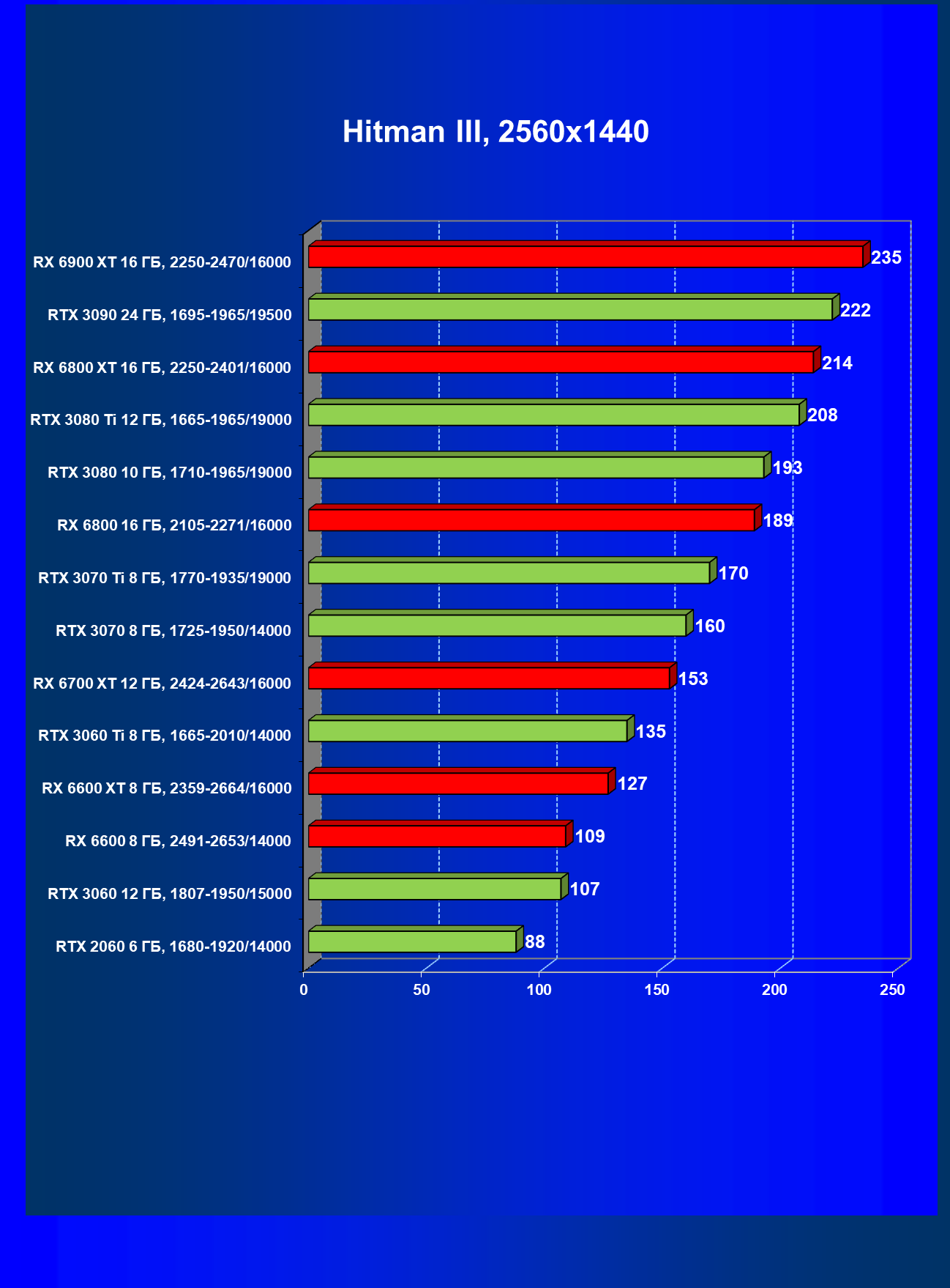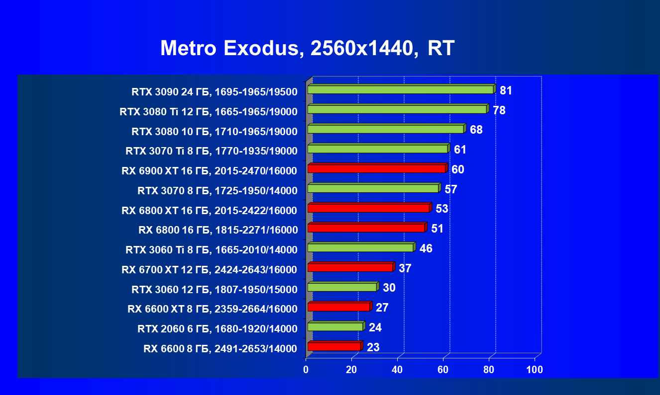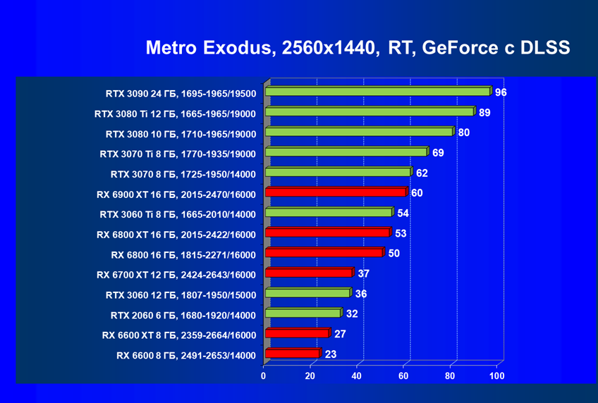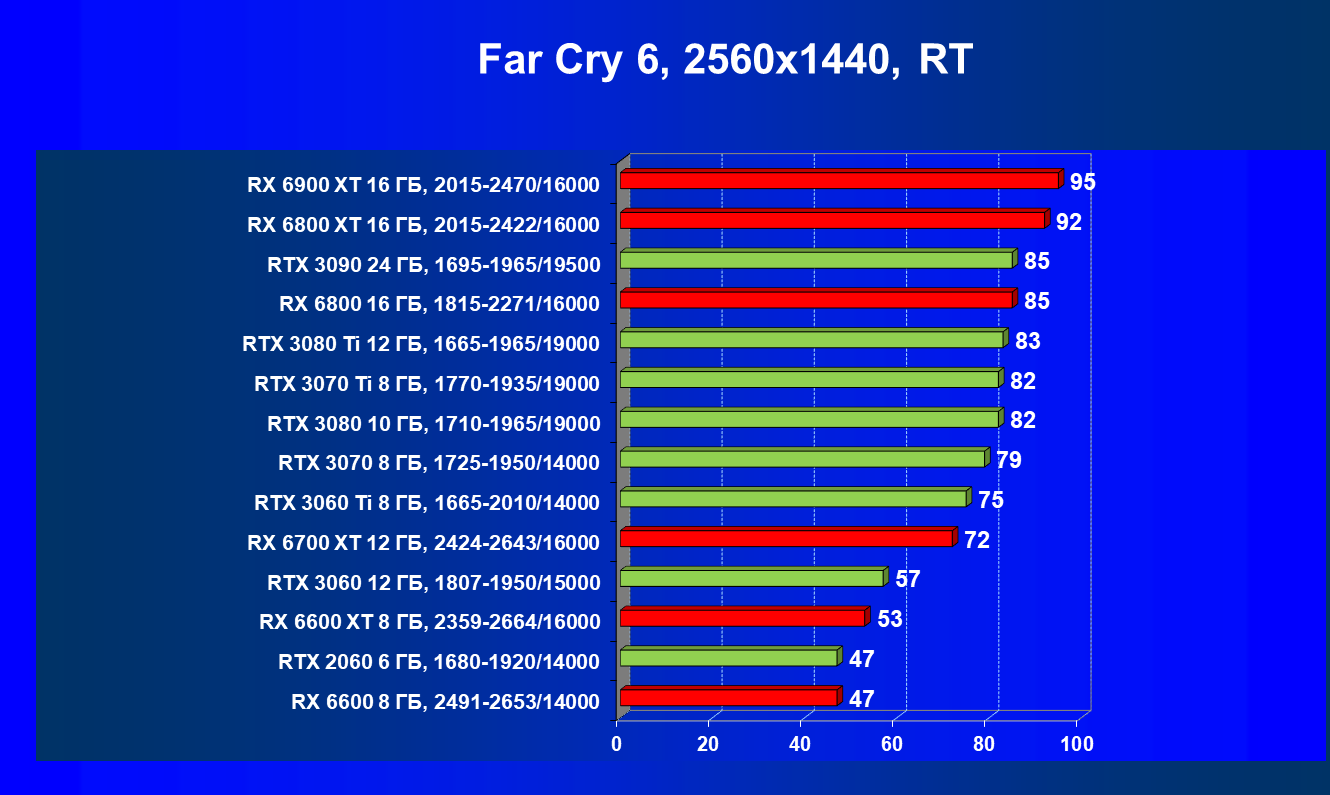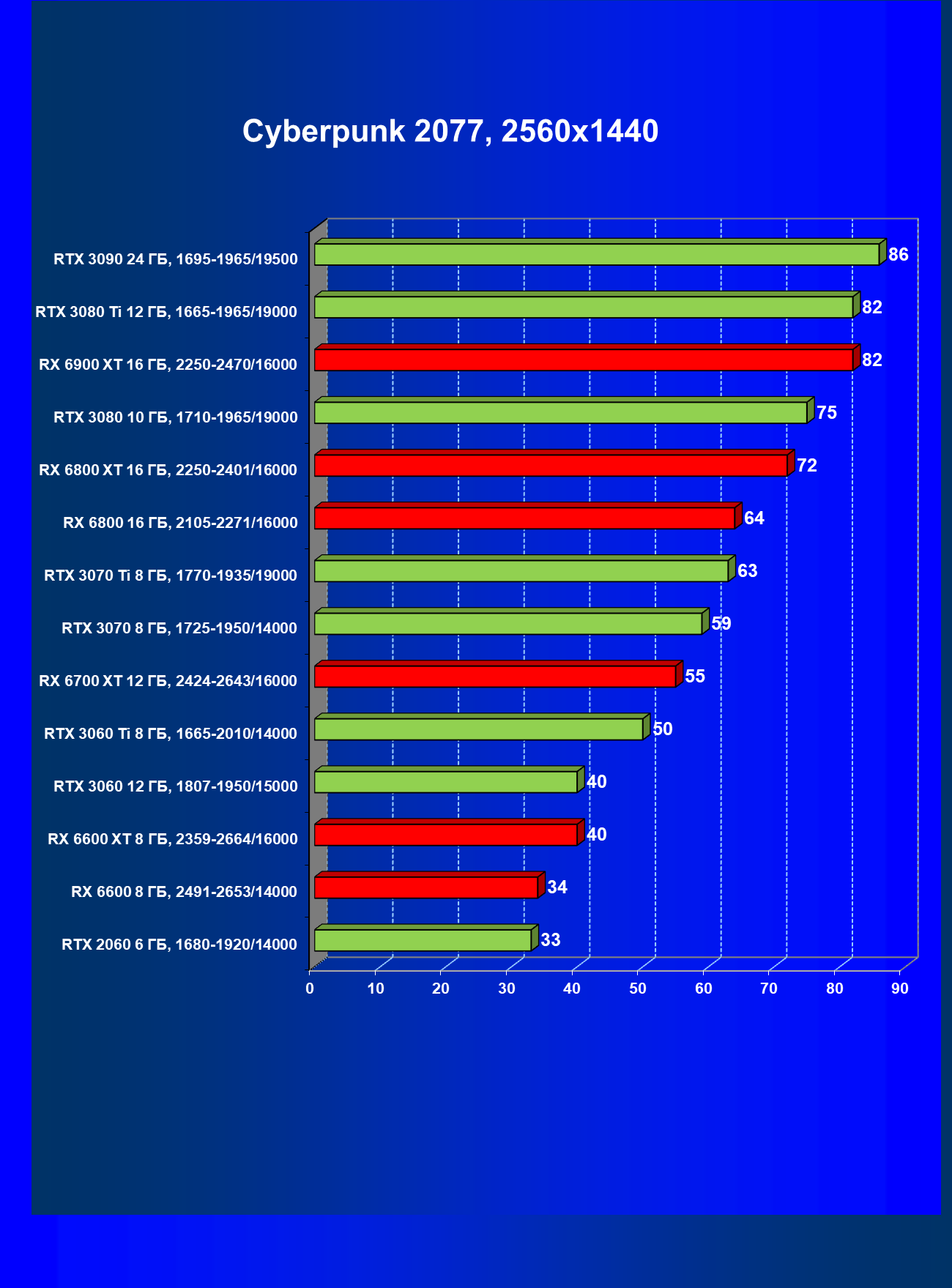 Кроме всех вышеперечисленных ускорителей для разрешения 2.5К при максимальном качестве картинки в классических играх с растеризацией подойдут прежде всего GeForce RTX 3060 Ti и Radeon RX 6700 XT (в ряде игр они могут замахнуться и на 4К), а если говорить об играх с RT, то в этом разрешении хорошо проявят себя Radeon RX 6900 XT и Radeon RX 6800 XT. Radeon RX 6600 XT весьма неплох для этого разрешения, но только без RT и не во всех играх (а уж 4К явно не для него). Видеокарты GeForce RTX 3060, GeForce RTX 2060 и Radeon RX 6600 в принципе потянут 2.5К, но не во всех играх и/или не на максимальных настройках графики.