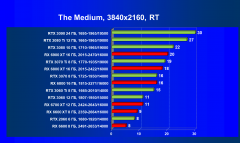 Рейтинг составлен по 8 тестам с применением технологии трассировки лучей (без Nvidia DLSS и AMD FSR!). Этот рейтинг нормирован по самому слабому ускорителю в данной группе — GeForce RTX 2060 (то есть сочетание скорости и функций GeForce RTX 2060 приняты за 100%).