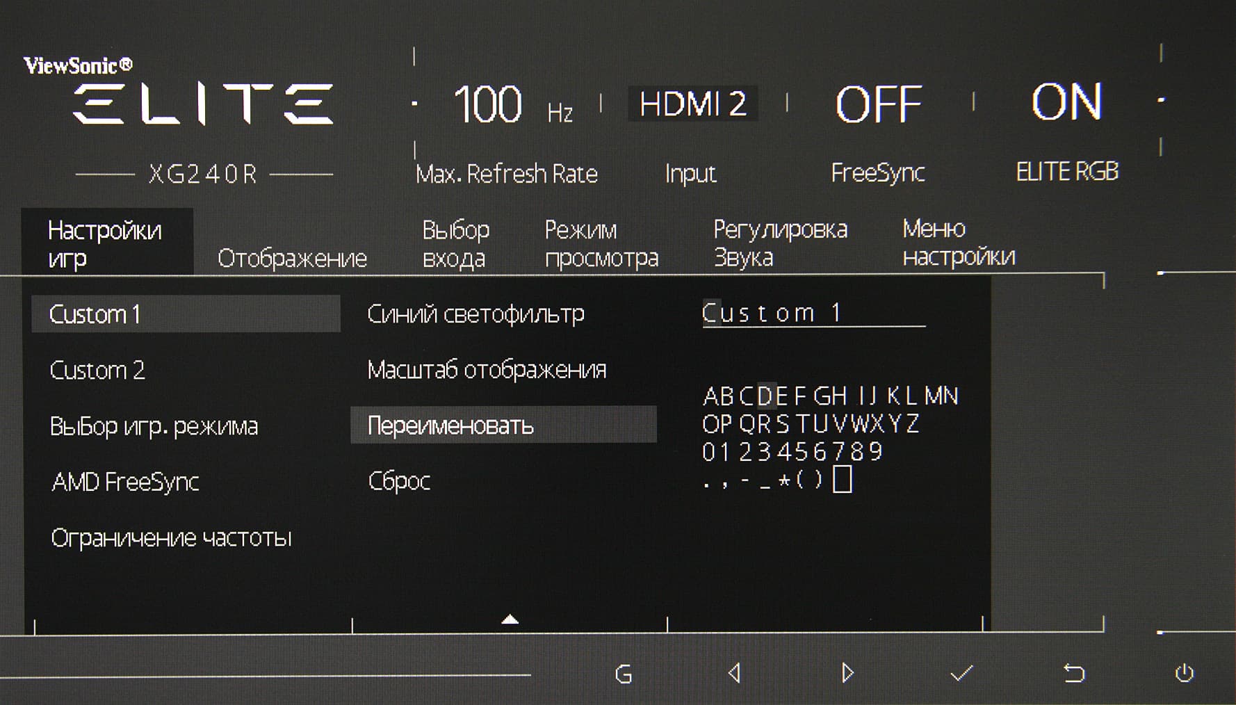 В этом мониторе реализована поддержка технологии AMD FreeSync по входам DisplayPort и HDMI. Диапазон поддерживаемых частот, который указывается на панели настроек видеокарты, равен 48—144 Гц для режимов с кадровой частотой 144 Гц. Отметим, что при высокой частоте обновления (от 120 Гц и выше) видимая плавность сохраняется всегда, поэтому особой необходимости в FreeSync уже нет.