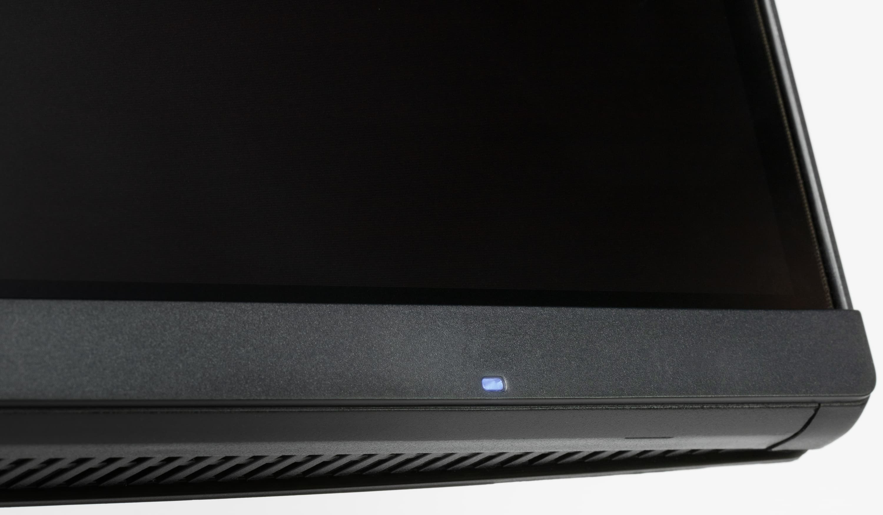 Внешняя поверхность матрицы черная, полуматовая, жесткая. Экран выглядит как монолитная поверхность, ограниченная снизу относительно узкой планкой, а сверху и по бокам — узкой окантовкой. Выведя изображение на экран, можно увидеть, что на самом деле между внешними границами экрана и собственно областью отображения есть неширокие поля — по 9 мм до внешних краев сверху и по бокам и 3 мм до планки снизу. По центру фронтальной планки находится логотип производителя, незатейливо выполненный светло-серой краской.