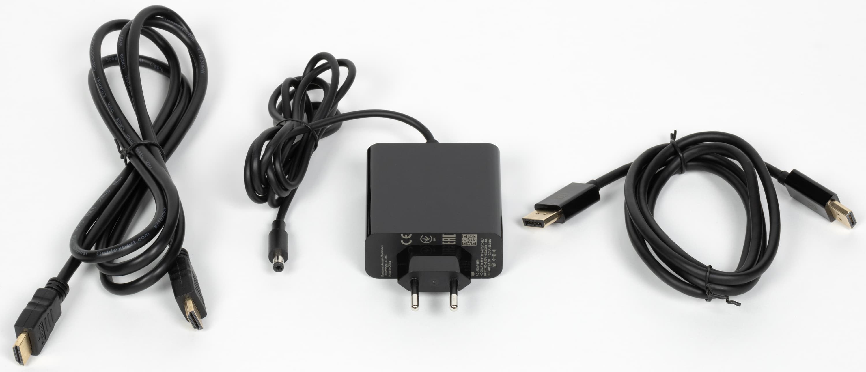 В комплект поставки входят два интерфейсных кабеля — DisplayPort и HDMI, с виду качественные.