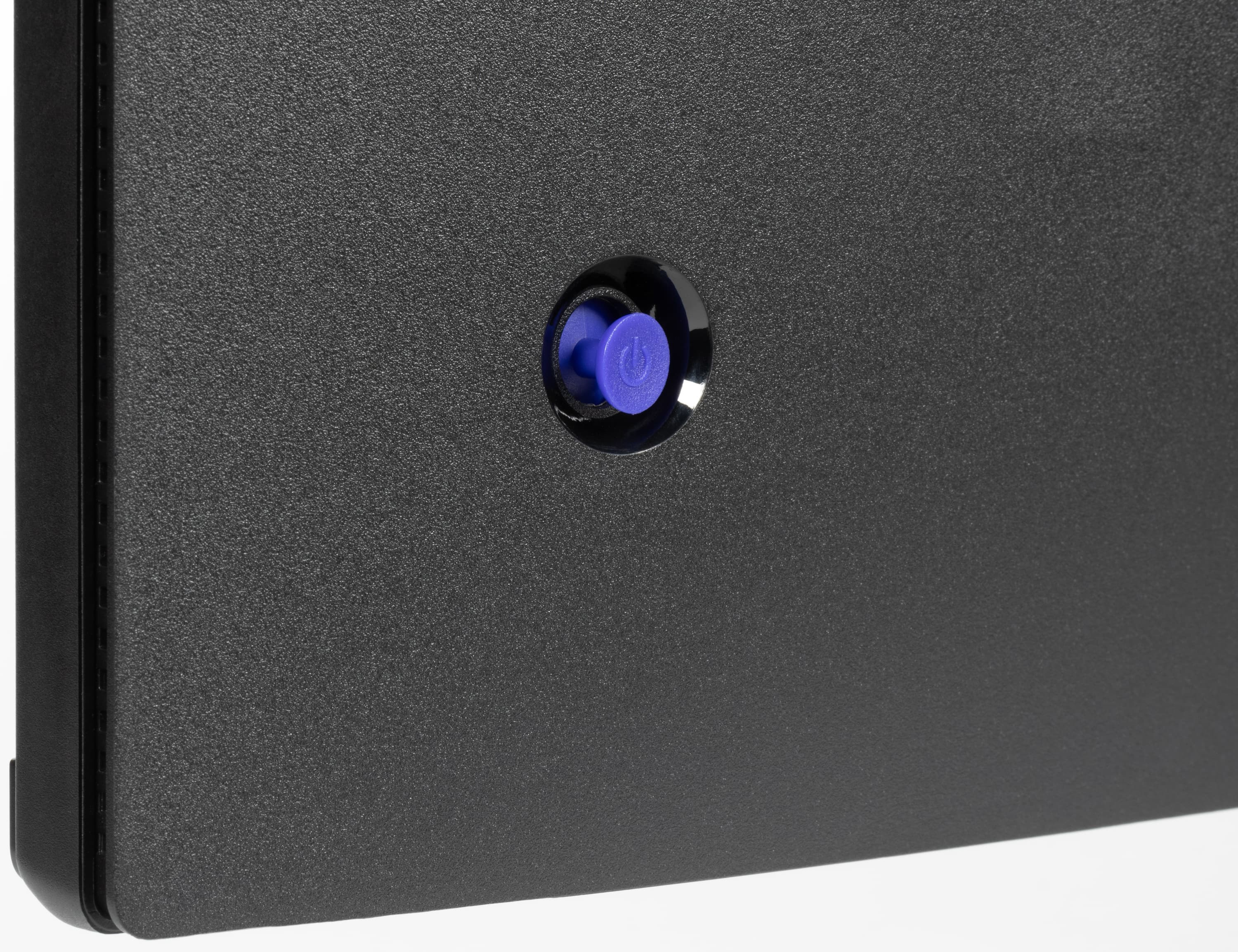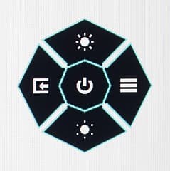 Индикатор питания при работе ярковато светится белым (можно отключить в меню), в режиме ожидания — медленно мигает белым и не горит, если монитор условно выключен. Включается монитор нажатием на джойстик, а выключается — длительным нажатием. Когда монитор включен и на экране нет меню, то при отклонении джойстика вверх или вниз выводится ползунок регулировки яркости,