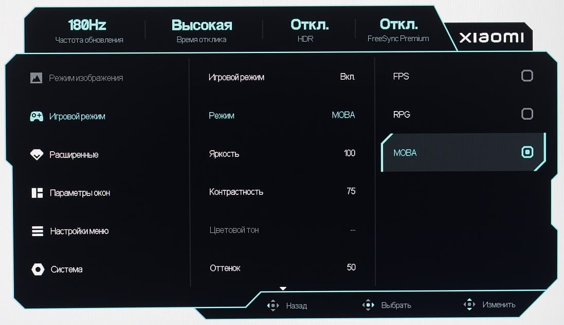 Из дополнительных возможностей присутствуют пара «геймерских» функции: вывод частоты кадров и увеличение яркости в тенях.