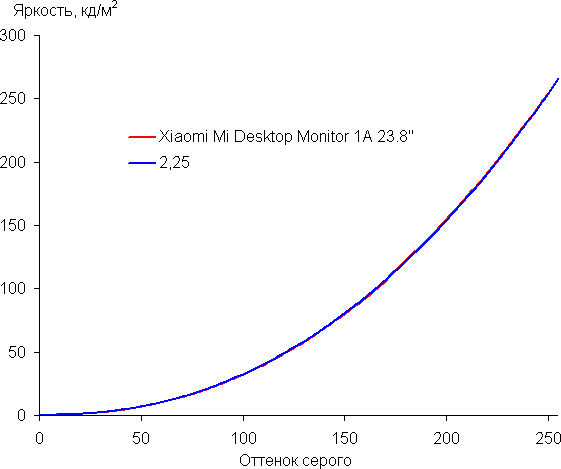Аппроксимация полученной гамма-кривой дала показатель 2,25, что немного выше стандартного значения 2,2, при этом реальная гамма-кривая почти не отклоняется от аппроксимирующей степенной функции: