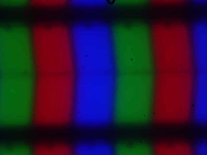 Изображение структуры пикселей из-за матовой поверхности размыто, но характерную для IPS структуру при желании распознать можно: