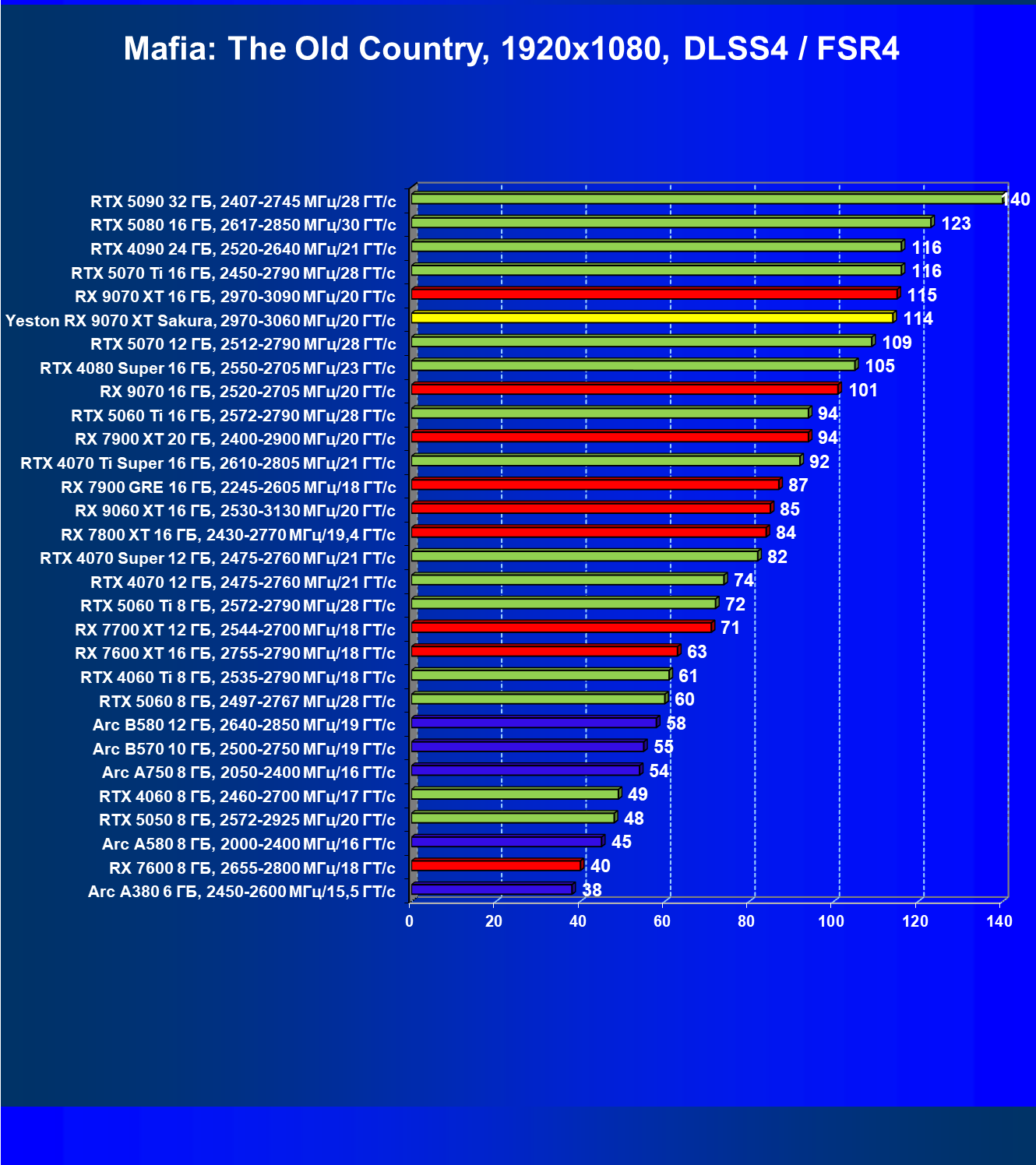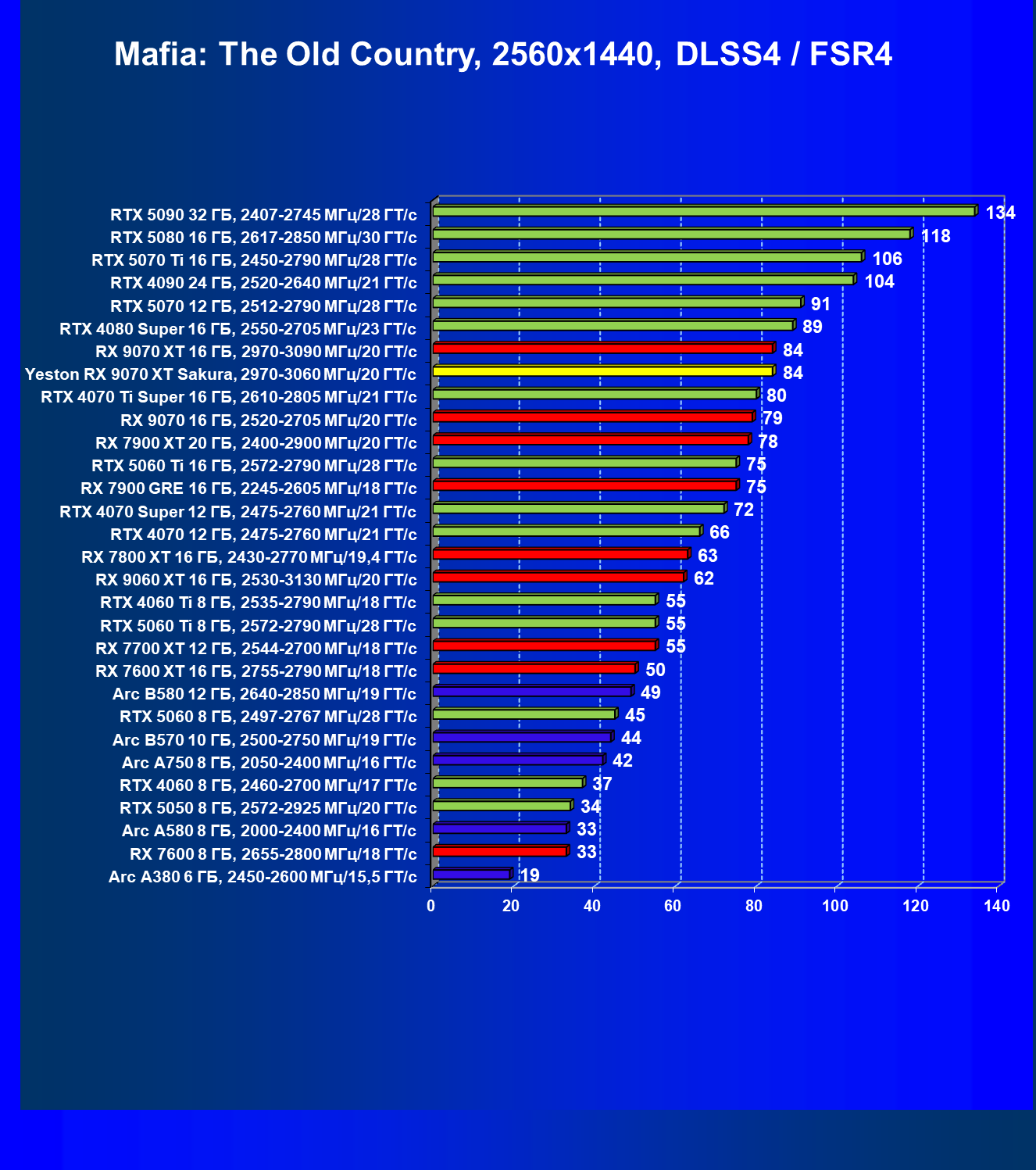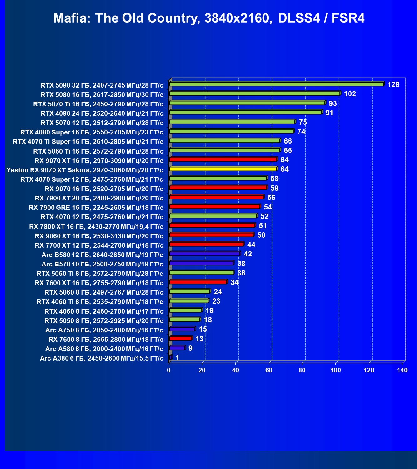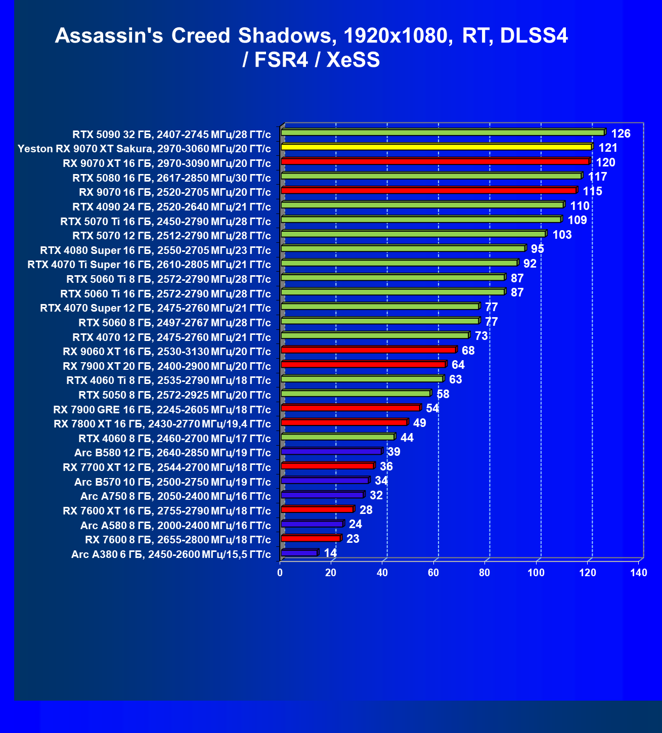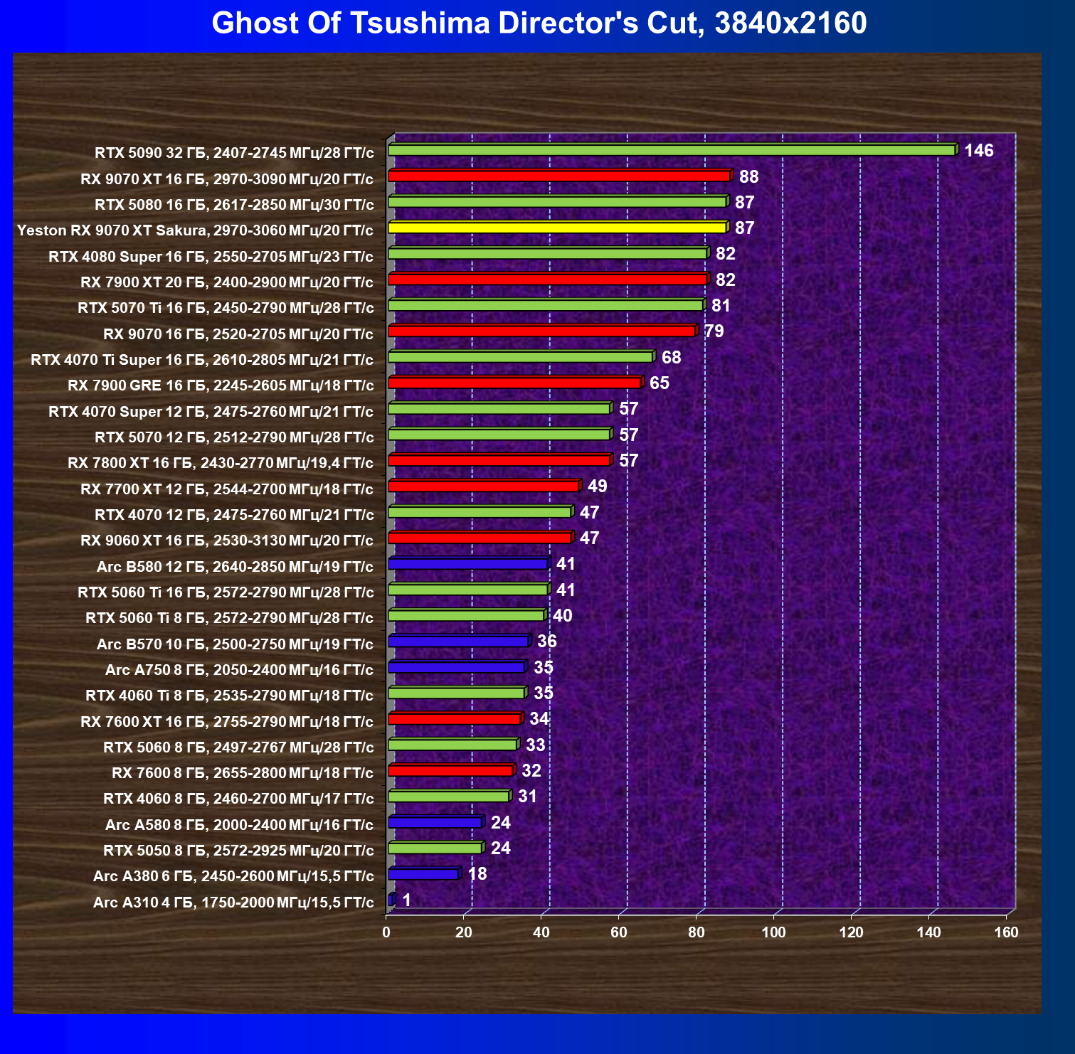 | 07 | Yeston RX 9070 XT Sakura, 2970—3060 МГц/20 ГТ/с | 5000 | 649 | 77 000 |