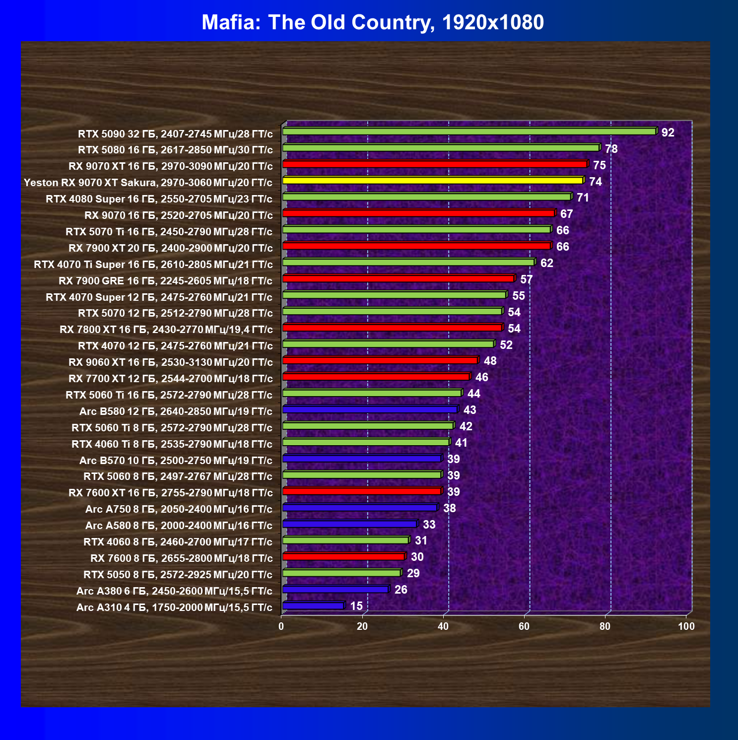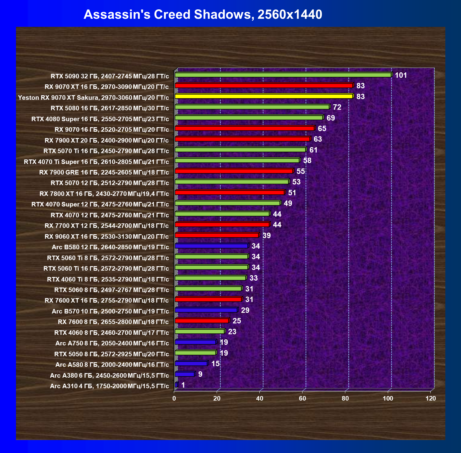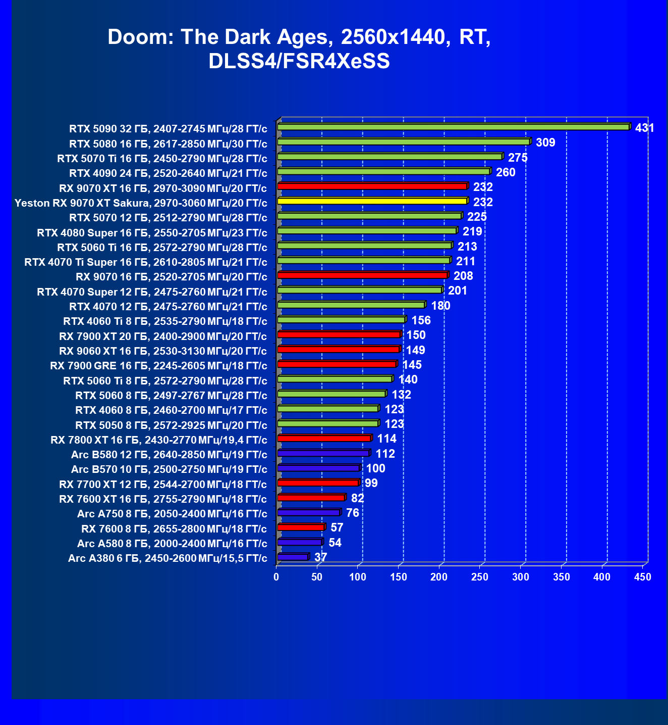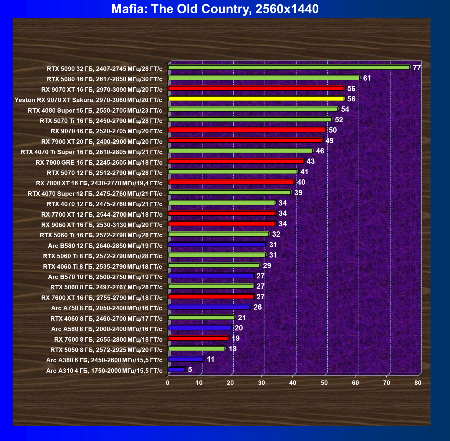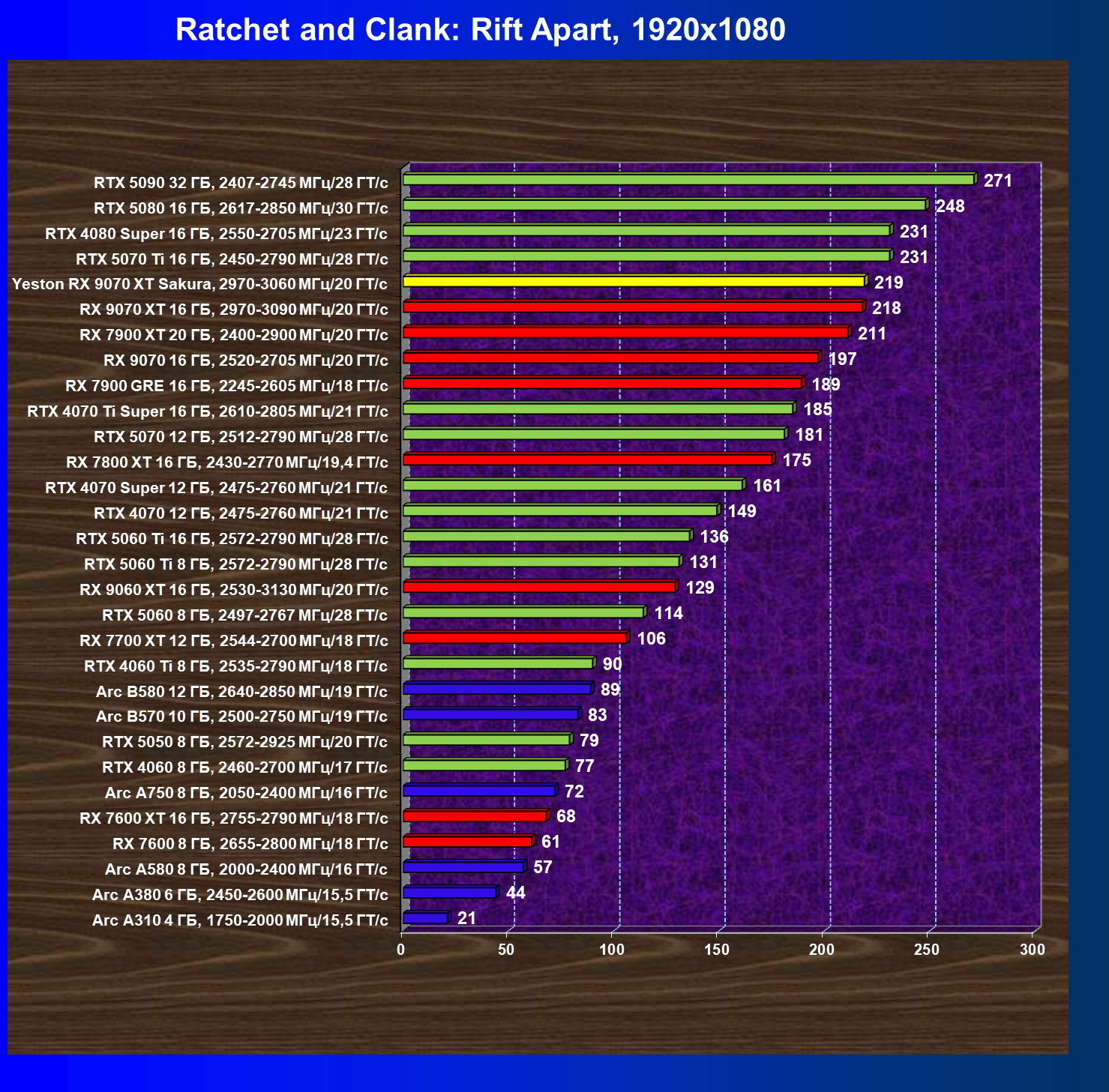 | 08 | Yeston RX 9070 XT Sakura, 2970—3060 МГц/20 ГТ/с | 312 | 2399 | 77 000 |