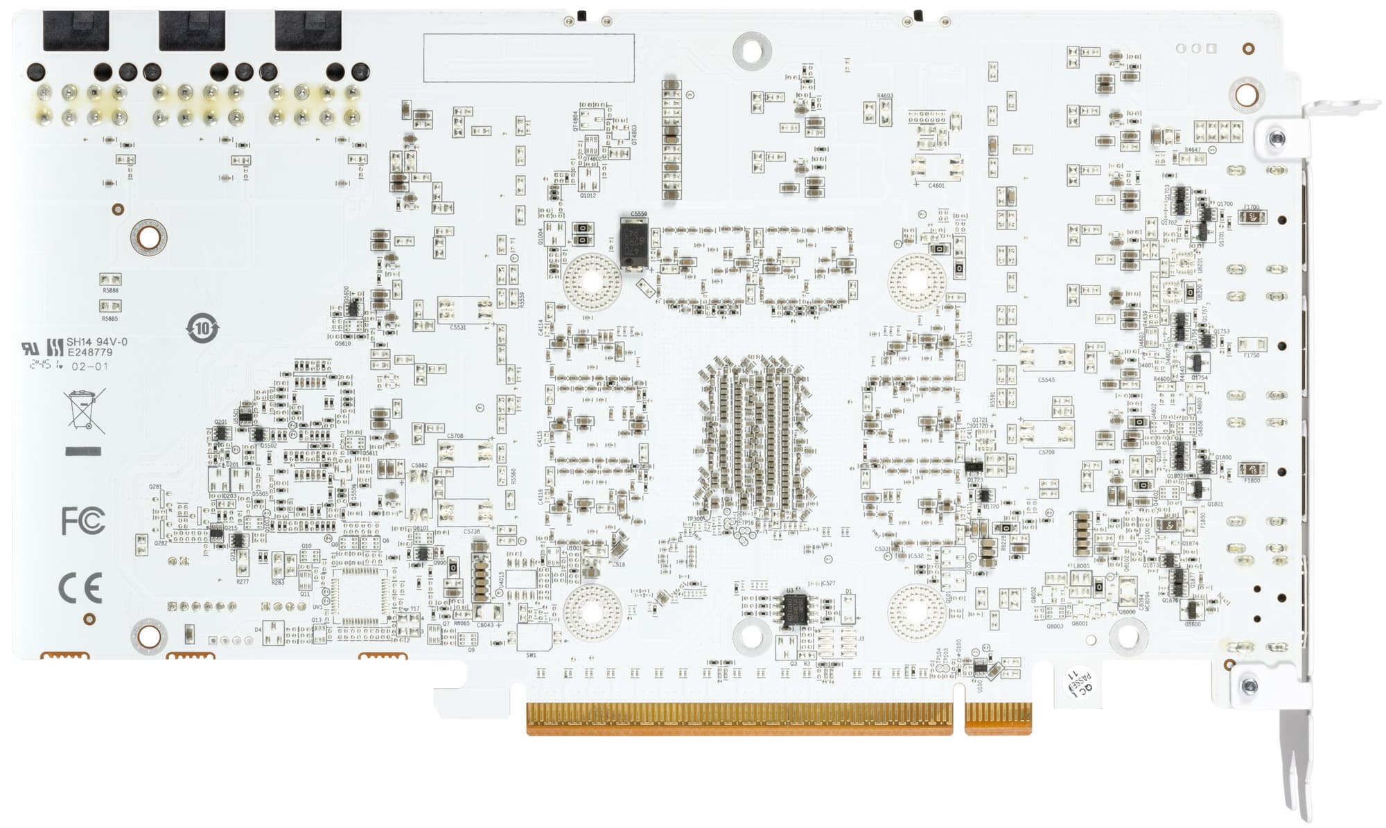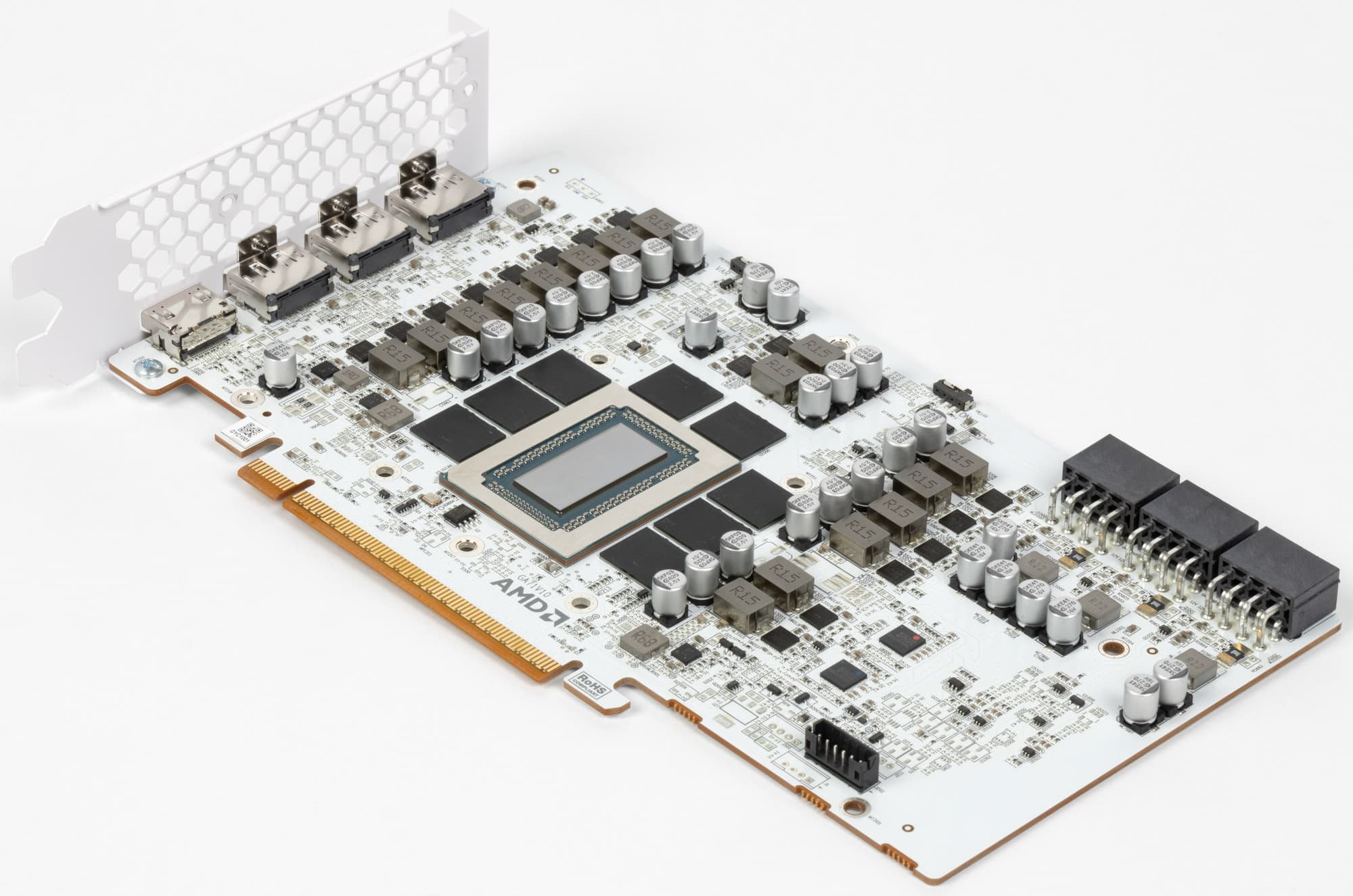 Питание на карту Yeston подается через три 8-контактных разъема питания стандарта PCIe 2.0.