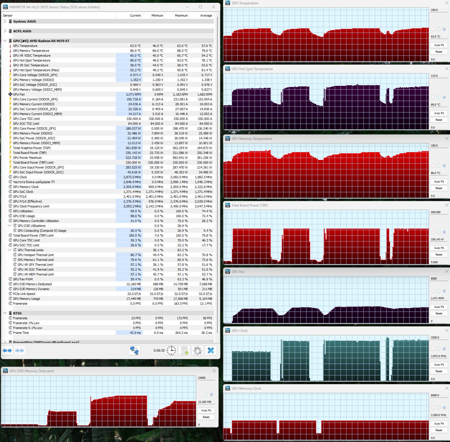 Энергопотребление карты Yeston в тестах доходило до 331 Вт в режиме BIOS VAR и до 304 Вт в режиме BIOS STD. В режиме BIOS VAR я попробовал ручной разгон (через панель управления драйверов AMD), получил максимальные стабильные частоты работы 3095 МГц по ядру и до 22,3 МТ/с по памяти. Это дало всего 1,5%-1,8% прироста производительности, поэтому данную карту разгонять не имеет смысла (у нее странные настройки в BIOS по частотам работы в целом).