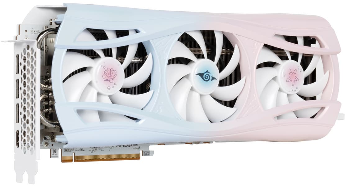 Yeston Radeon RX 9070 XT Sakura Atlantis (16 ГБ) — оригинальный вариант старшего ускорителя AMD в новом поколении, но уровня ниже флагманского (AMD с самого начала заявила, что на данном этапе они флагманские карты выпускать не будут).