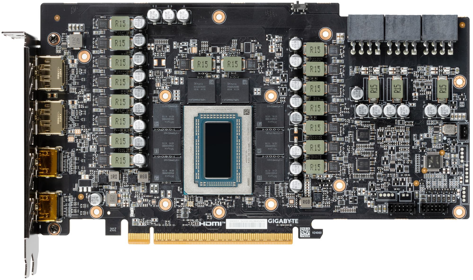Карта имеет 16 ГБ памяти GDDR6 SDRAM, размещенной в 8 микросхемах по 16 Гбит на лицевой стороне PCB. Микросхемы памяти SK Hynix (H56G42AS8DX014) рассчитаны на номинальную частоту работы в 2500 МГц (эффективная ПСП 20 ГТ/с, или 20 Гбит/с).
