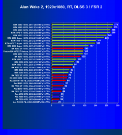 | 19 | RX 7800 XT 16 ГБ, 2430—2770 МГц/19,4 ГТ/с | 2536 | 321 | 79 000 |