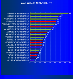 | 25 | RX 7800 XT 16 ГБ, 2430—2770 МГц/19,4 ГТ/с | 195 | 1542 | 79 000 |
