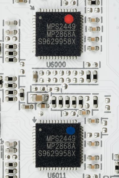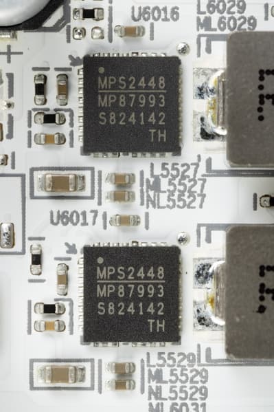 У карты имеется два ШИМ-контроллера Monolithic Power Systems MP2868, они работают в паре и управляют обеими схемами питания.