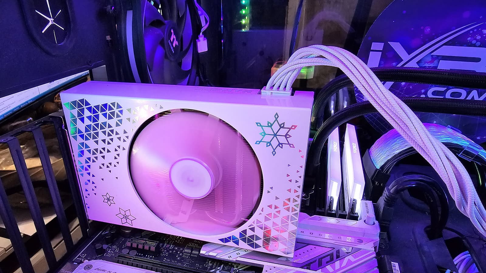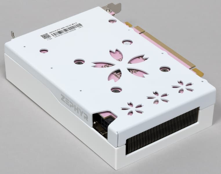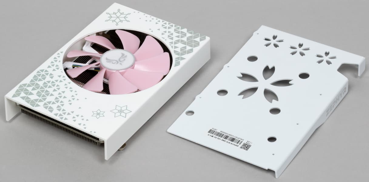 Видеокарта Zephyr GeForce RTX 3060 ITX Sakura&Snow (12 ГБ) не имеет ни фабричного разгона, ни интересного комплекта поставки. Однако при этом вполне заслуживает того, чтобы после окончания службы попасть в музей видеокарт (если таковые имеются). Во-первых, у нее уникальная окраска: бело-розовый дизайн, а особенно розовая печатная плата крайне редко встречаются на рынке видеокарт.