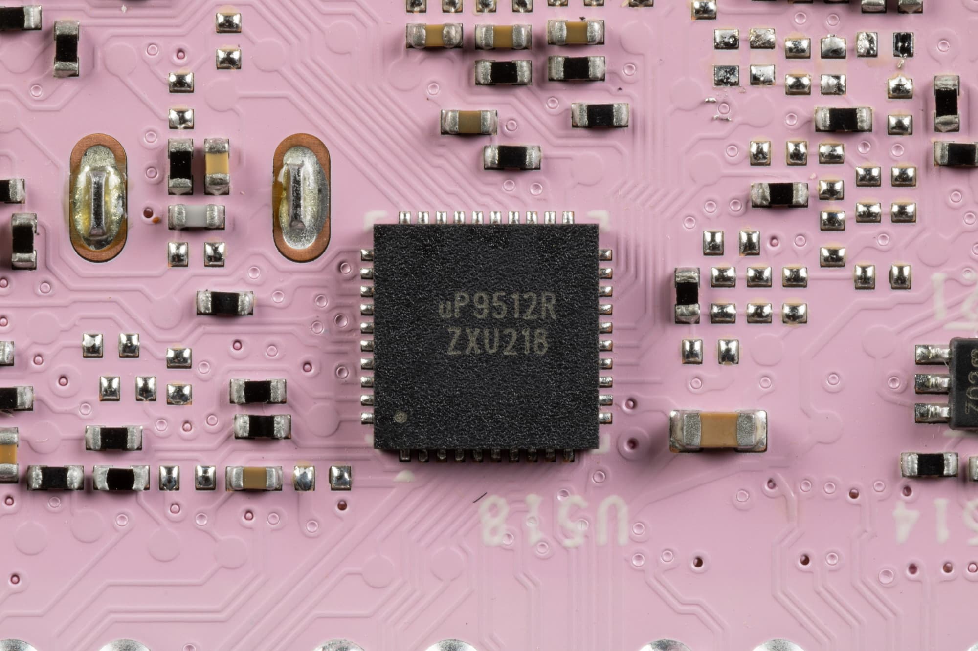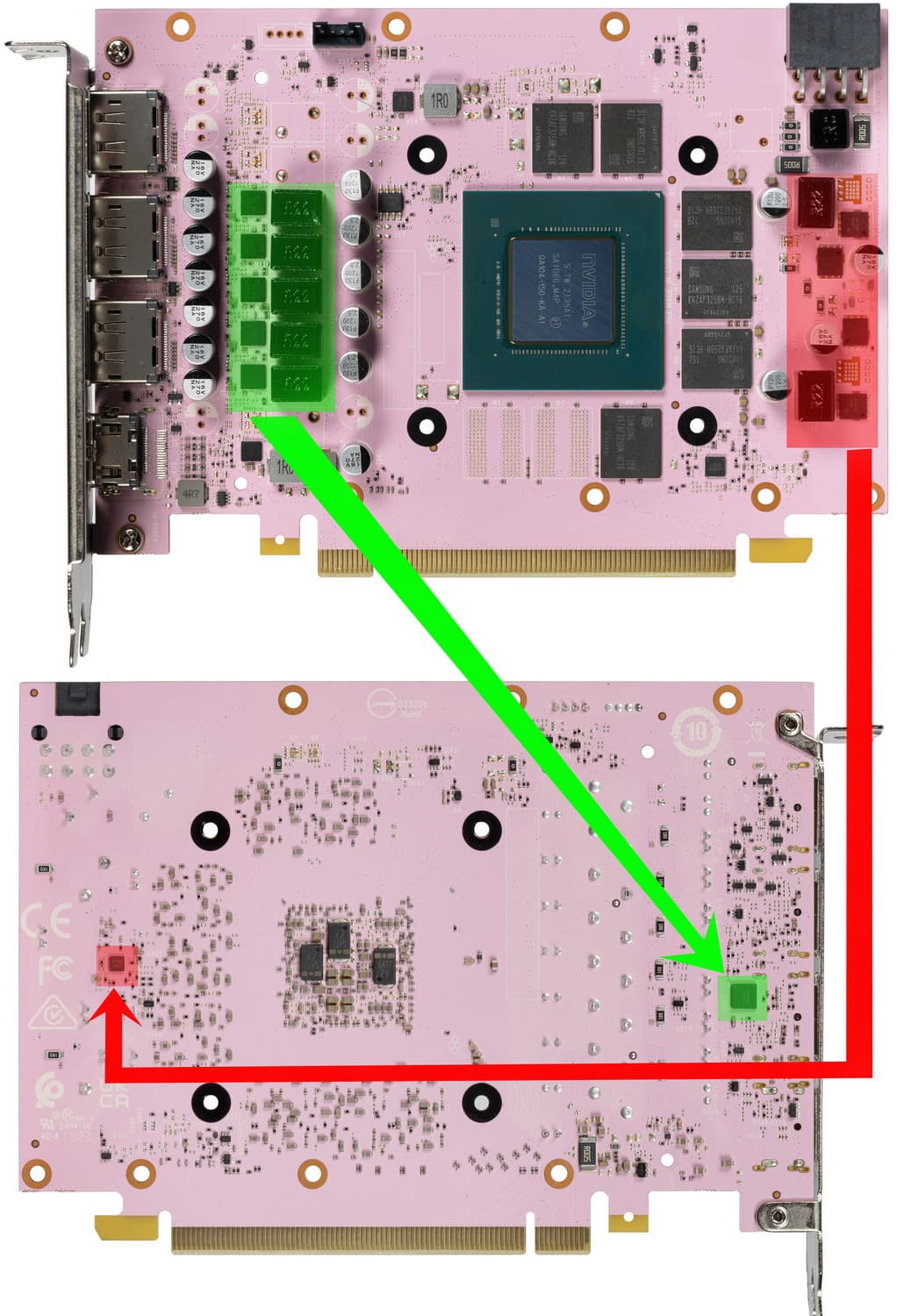 Зеленым цветом отмечена схема питания ядра, красным — памяти. ШИМ-контроллер uP9512R (uPI Semiconductor) отвечает за работу фаз питания графического процессора.