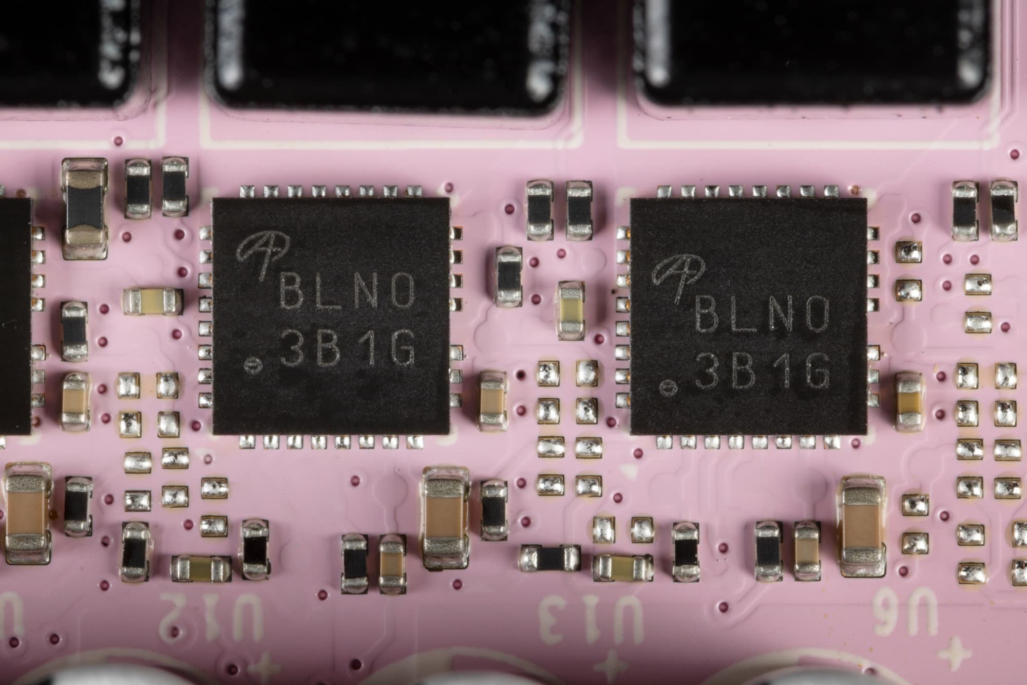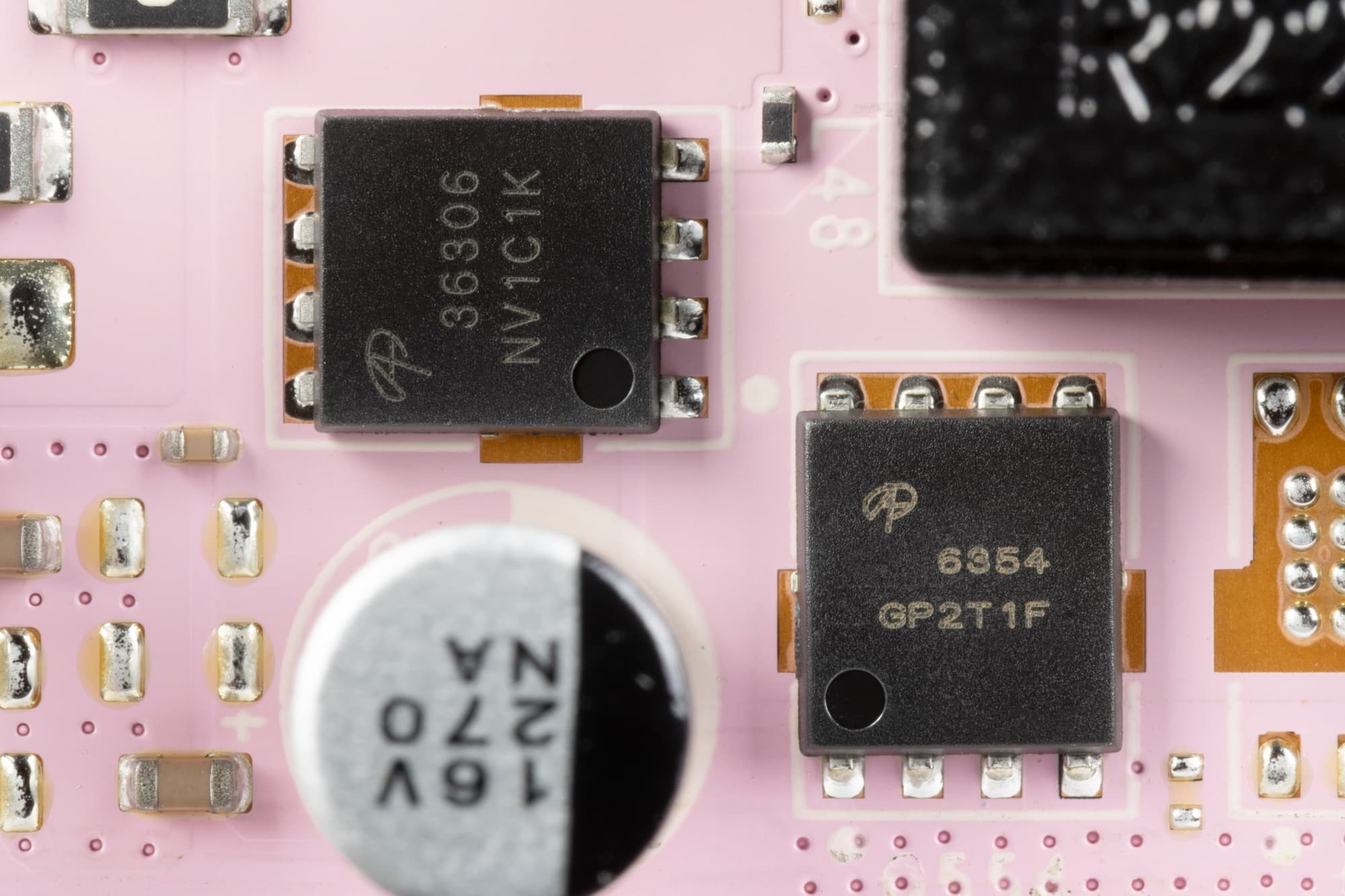 В преобразователе питания ядра у карты Zephyr применены микросхемы DrMOS — AOZ5311 (Alpha&Omega) с максимально возможным током 55 А.