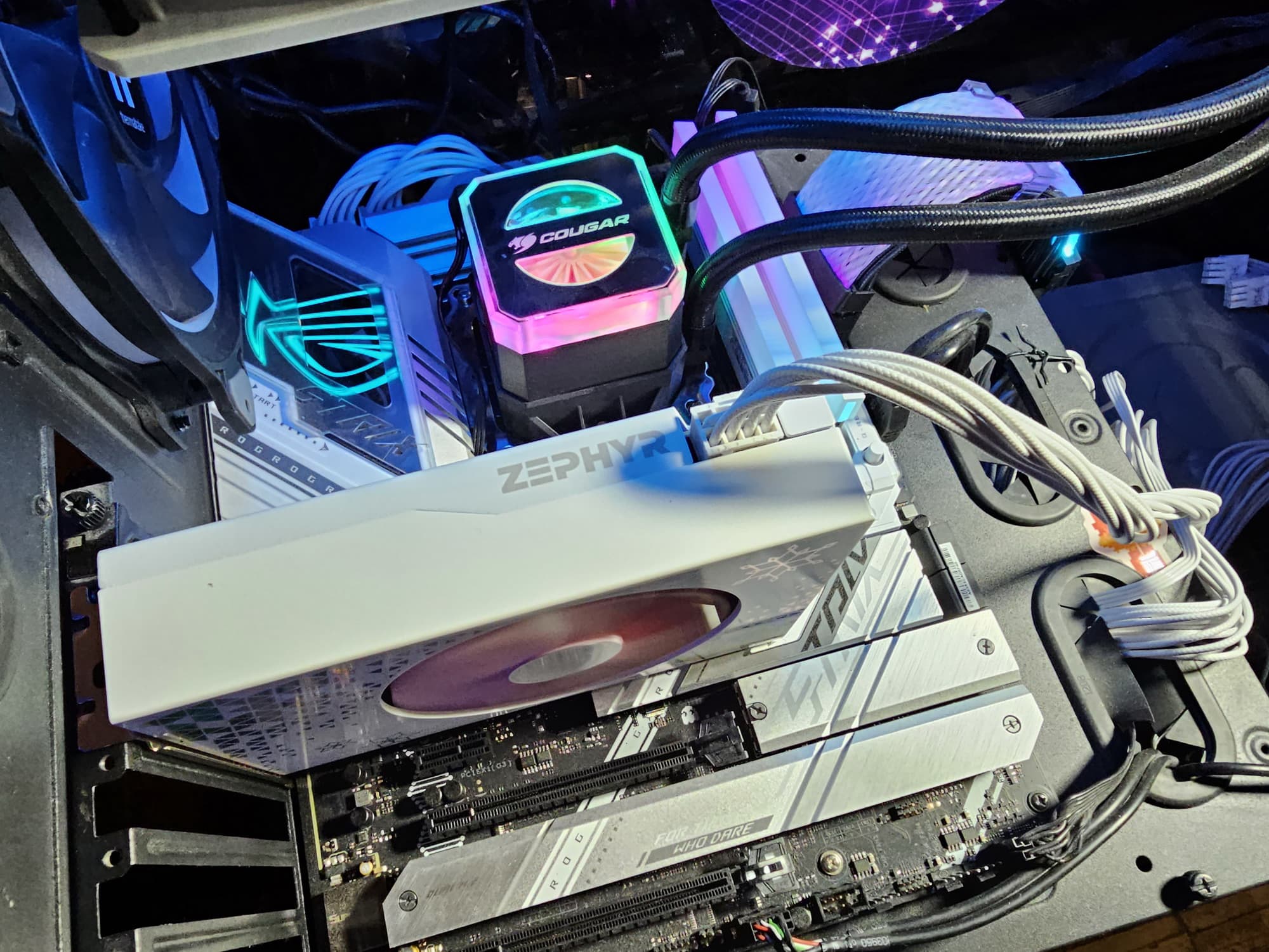 Частоты памяти и ядра у карты Zephyr такие же, как у референс-карты. Энергопотребление карты Zephyr в тестах доходило до 154 Вт (пиковое значение — 187 Вт).