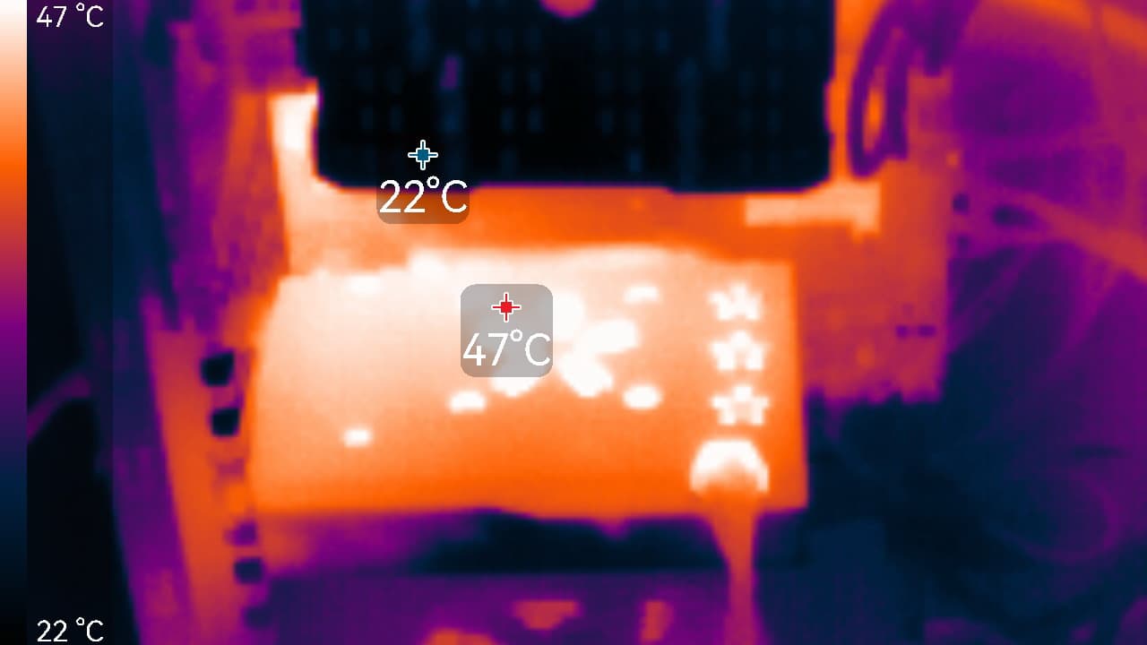 Максимальный нагрев наблюдался в районе преобразователей и разъема питания.