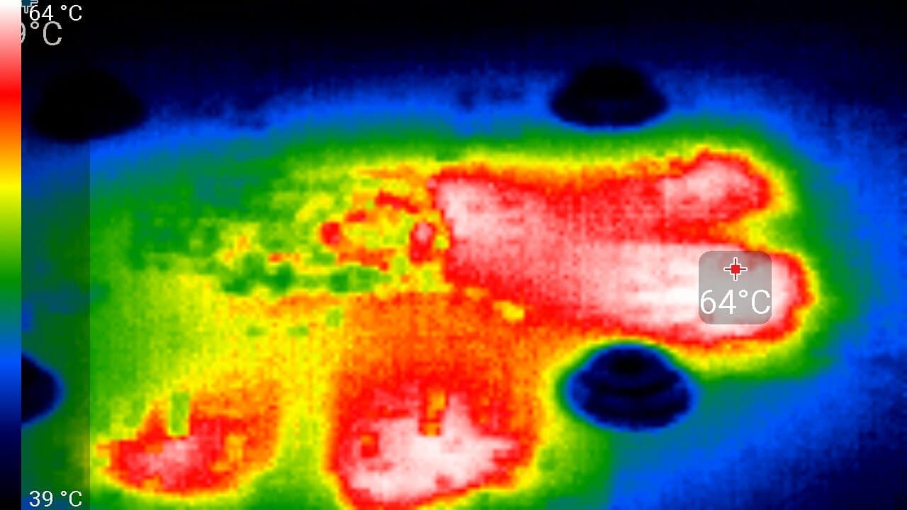 Максимальный нагрев — большая часть PCB вокруг GPU.