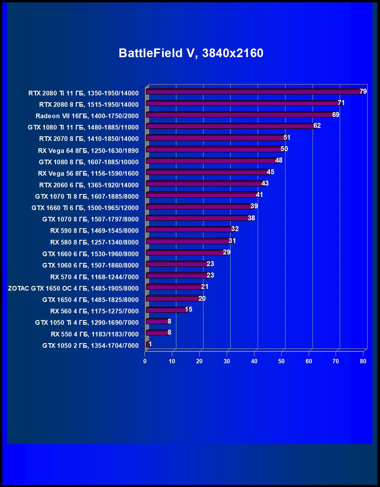 | 03 | Zotac GTX 1650 OC 4 ГБ, 1485—1905/8000 | 310 | 310 | 10 000 |