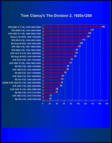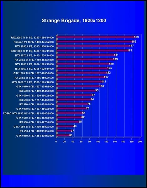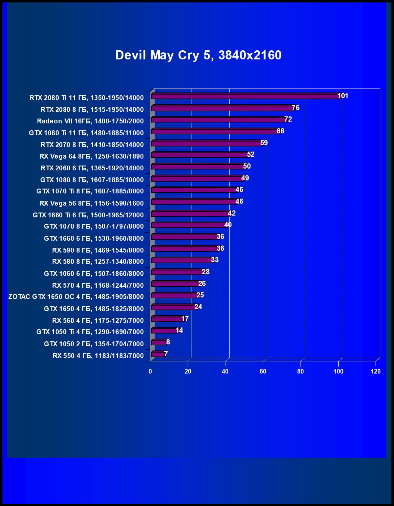 | 19 | GTX 1650 4 ГБ, 1485—1825/8000 | 300 | 303 | 9900 |