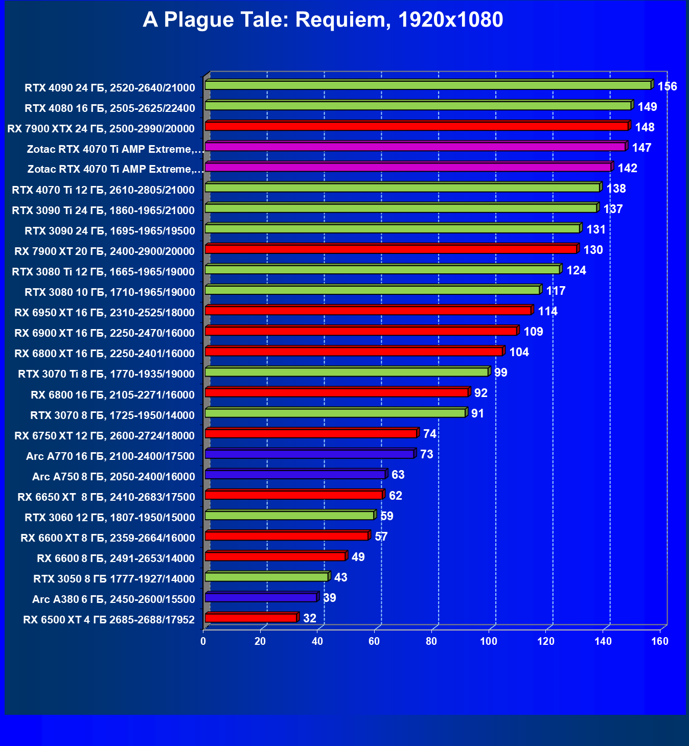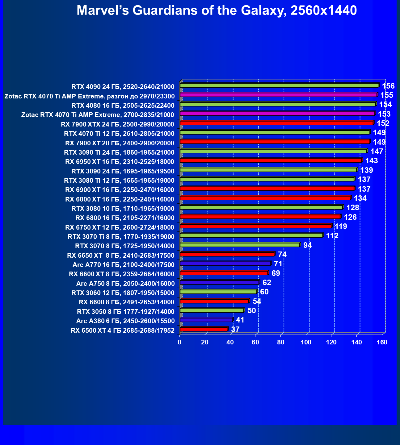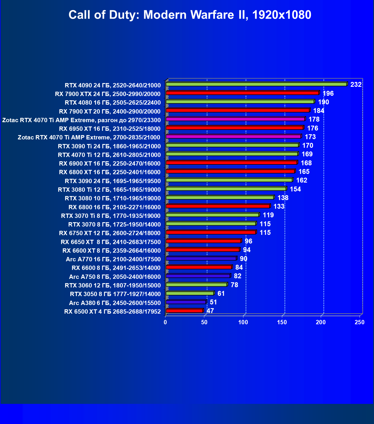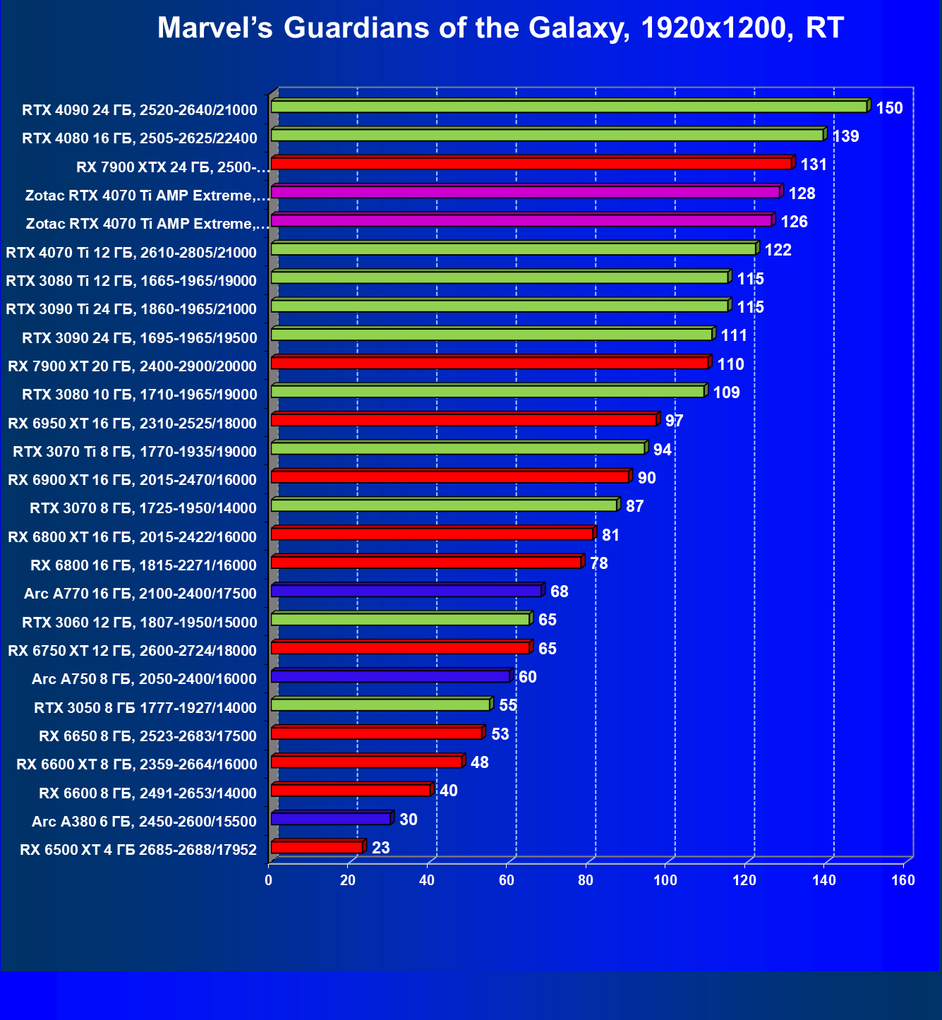 | 03 | Zotac RTX 4070 Ti Amp Extreme, разгон до 2970/23300 | 163 | 1340 | 82 000 |