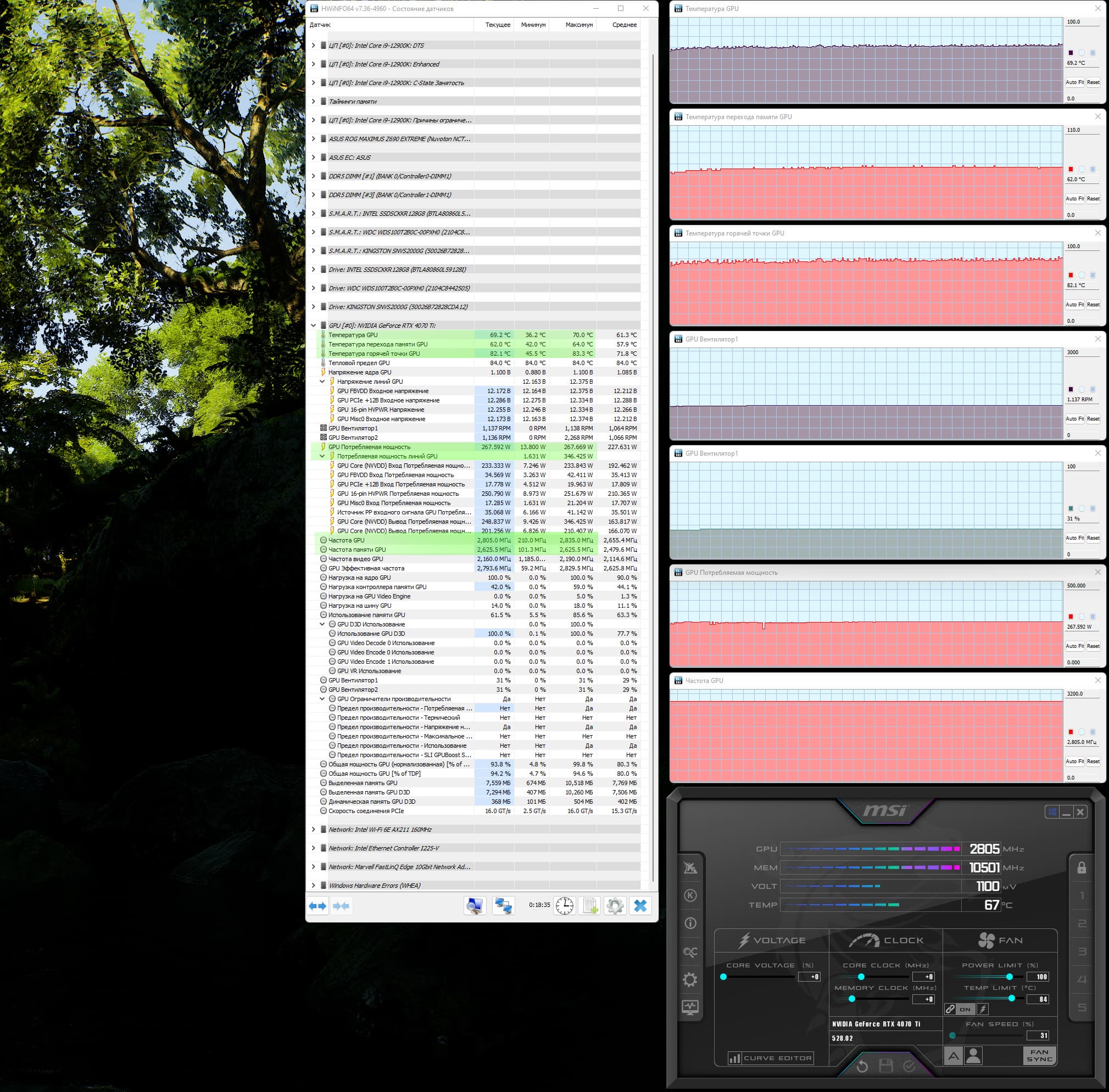 | 01 | RTX 4070 Ti 12 ГБ, 2610—2805/21000 | 165 | 1273 | 77 000 |