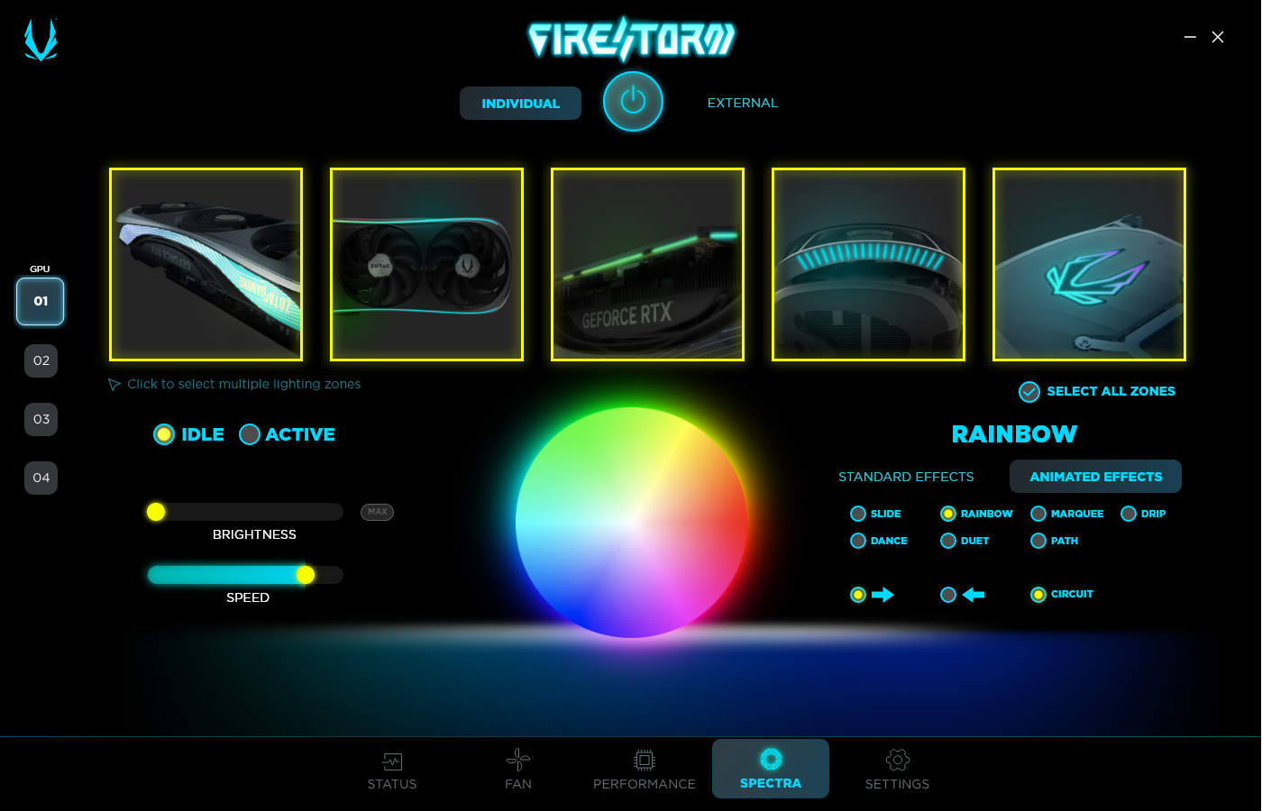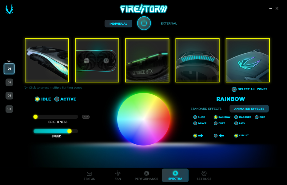 Управление подсветкой осуществляется с помощью фирменной программы Zotac — Fire Storm.