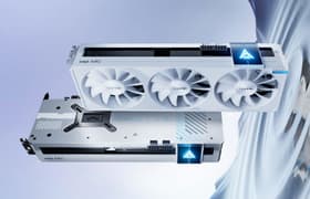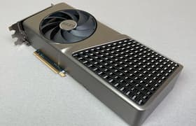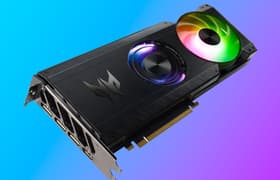 17 июн 2024 09:00 10 Видеокарта Acer Bifrost Intel Arc A770 OC (16 ГБ): двухслотовый современный ускоритель с оригинальными кулером и подсветкой Acer Predator Bifrost Intel Arc A770 OC (16 ГБ) — среднебюджетная видеокарта, поддерживающая все современные 3D-технологии, имеющая очень приличный объем памяти в 16 ГБ, которого будет достаточно даже для флагманских решений, но предназначенная для современных игр в разрешениях 1080p (Full HD) и 1440p (2.5K). Карта имеет сравнительно небольшие габариты в плане (270×120 мм) и занимает всего 2 слота в системном блоке, что требует очень эффективной системы охлаждения, ведь ее потребление может достигать 171-173 Вт. И мы видим, что при таких сильно ограниченных габаритах кулер со своей задачей справляется удовлетворительно, но не более того: температуры высоковаты, шум отчетливый, в простое вентиляторы не останавливаются. Сама идея установки на карту двух разнотипных вентиляторов так и осталась для нас спорной, подтвержденной эффективности мы не увидели.