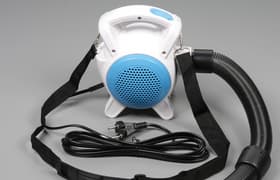 питание от электросети, наплечный ремень, несколько насадок и вариантов компоновки