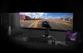 изогнутый Dual QHD-экран 49 дюймов на матрице QD-OLED, сертификат VESA DisplayHDR 400 True Black, частота обновления до 144 Гц и функция KVM