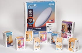 Умное освещение Gauss (светильник, лампы, лента, розетка, датчик движения):