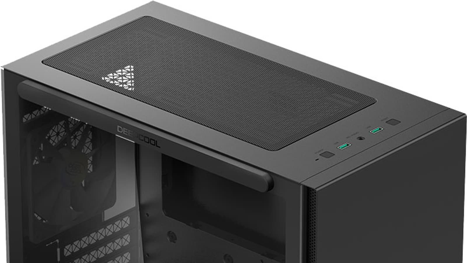 microATX-башня со стеклянной стенкой и стальной лицевой поверхностью передней панели