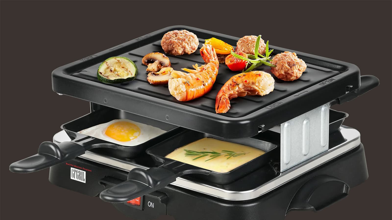 мини-гриль и сковородочки для приготовления раклета в одном приборе