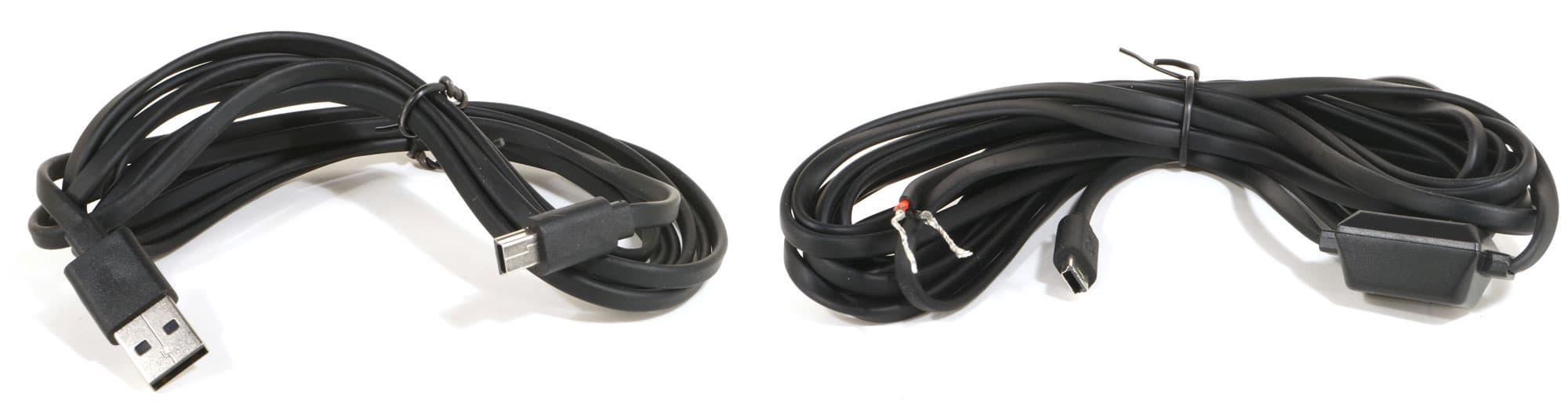 Оба прилагаемых кабеля имеют плоское сечение, длина первого кабеля, предназначенного для питания от адаптера прикуривателя, составляет 2,3 метра, а второй кабель, необходимый для стационарного монтажа, имеет длину 4,5 метра.