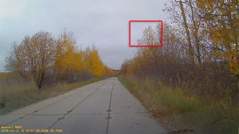 Благодаря этим стоп-кадрам можно видеть, что при нехватке освещенности камера регистратора удлиняет выдержку, что приводит к значительному смазу. Это нельзя считать недостатком — именно так ведут себя практически все камеры с микроскопической оптикой.