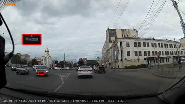 Благодаря точному определению местоположения, в видеокадре могут присутствуют текущие географические координаты. Жаль, что прибор лишен функции оповещения о радарах по базе камер. А ведь для ее внедрения достаточно «всего лишь» доработать/переработать встроенное ПО.
