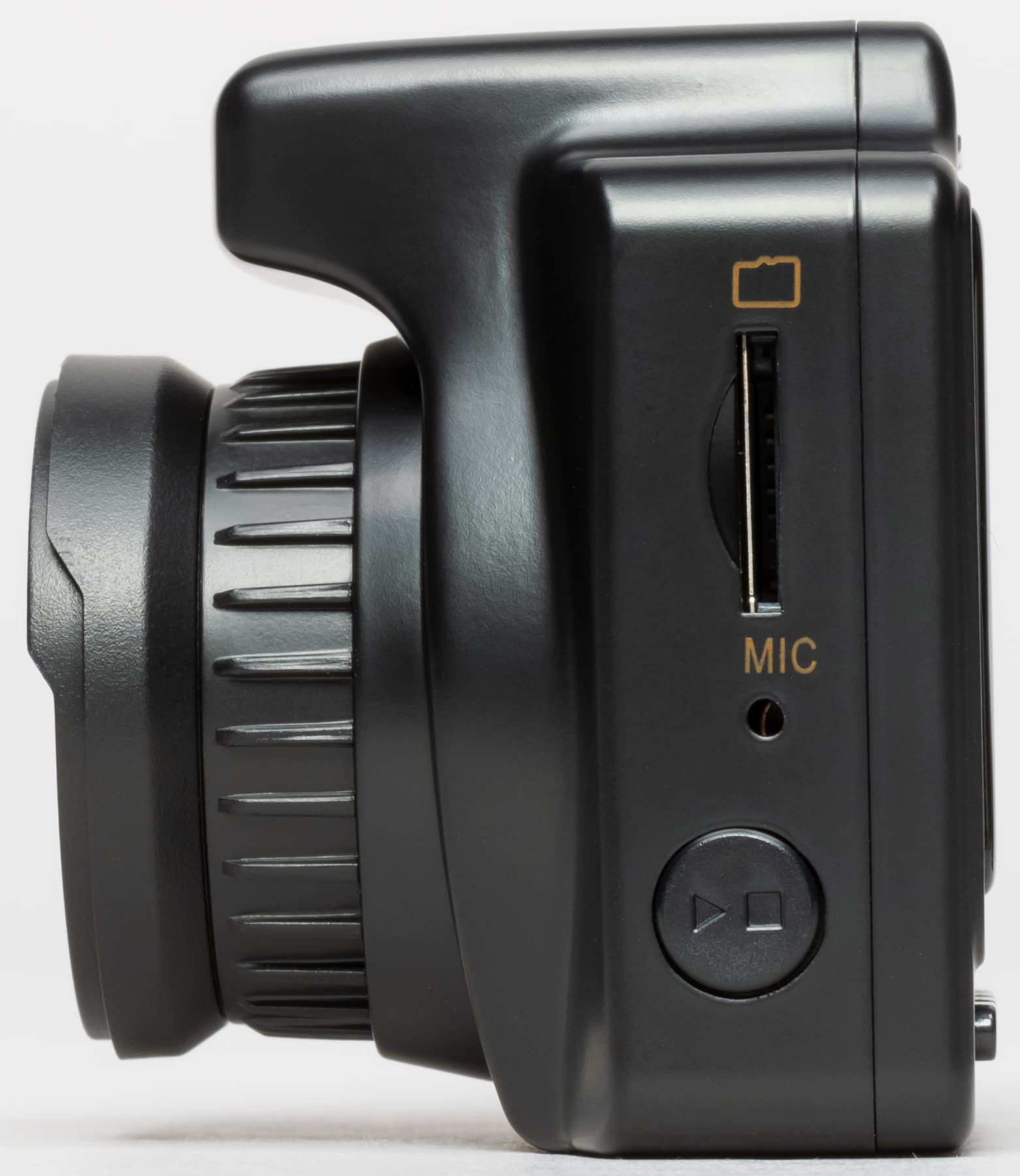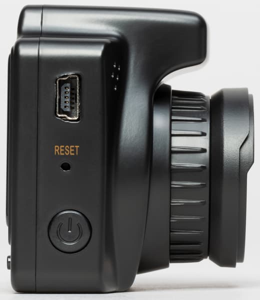 Слот для карты памяти, отверстие микрофона и кнопка принудительного старта/остановки записи находится на левой стороне корпуса. На правой стороне расположен разъем Mini-USB, утопленная кнопка перезагрузки и кнопка принудительного включения/выключения прибора. Этой же кнопкой включается встроенный адаптер Wi-Fi, для чего кнопку нужно зажать на 4 секунды.