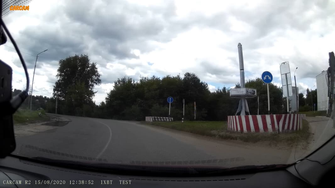 Рассматриваемый аппарат имеет встроенный G-сенсор с настройкой чувствительности, которую мы первым делом снизили до минимума. Но даже и в самом минимуме сенсор регулярно срабатывал на дорогах, не отличающихся качеством. Например, где-то на этом участке дороги сенсор решил, что произошла авария, вследствие чего текущий видеоролик был перемещен в специальную папку EMR.