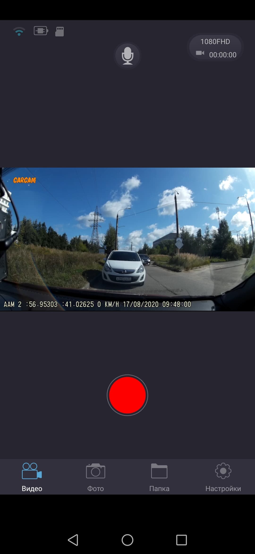 Мобильное приложение, посредством которого осуществляется работа с регистратором, называется Carcam M5 (версия для Android, версия для iOS). Эта простая, стабильная программа с интуитивно понятным, как теперь принято говорить, интерфейсом, работает исправно, быстро, без вылетов или зависаний. Даже несмотря на предупреждение о том, что текущая 10-я версия Android является слишком новой для приложения.