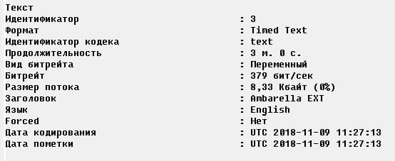 Однако, изучив характеристики видеофайлов, мы обнаружили «спрятанную» в них текстовую информацию — некие субтитры.