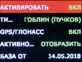 Во время движения регистратор может отображать на своем дисплее текущие время и скорость, количество доступных спутников, и прочую информацию.