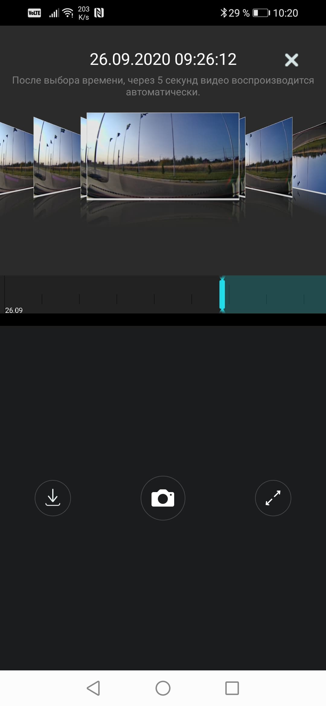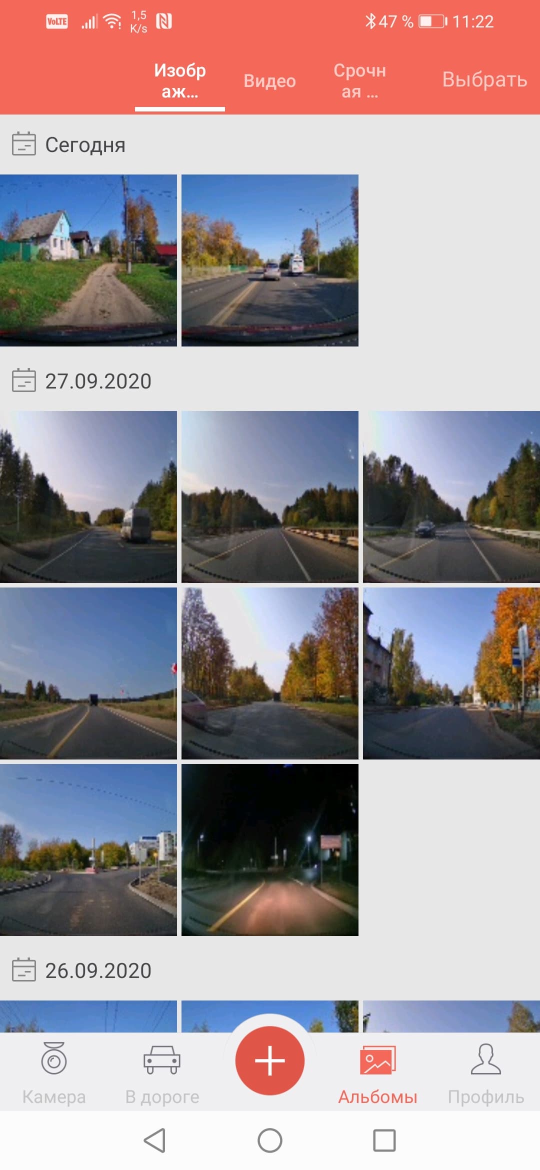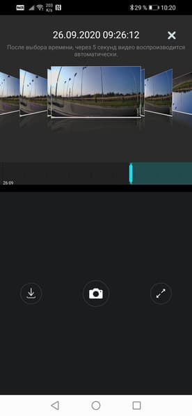 Просмотр и загрузка записанных в память регистратора материалов производится в модуле Альбомы. Чтобы просмотреть выбранный видеоролик, необязательно загружать его в память смартфона — потоковое воспроизведение идет непосредственно из памяти регистратора. Пользователю наверняка понравится изящный способ выбора архивных роликов с помощью пролистывания.