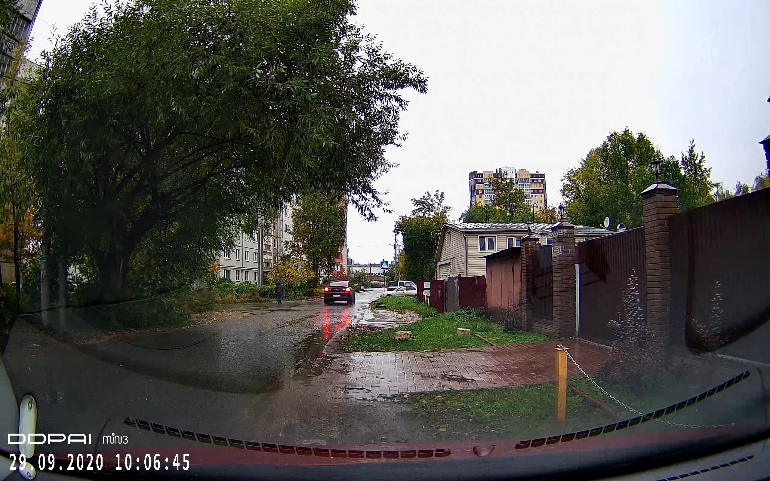 Первый стоп-кадр дает ответ на вопрос «нужен ли больший размер кадра». Ответ был такой: иногда. Здесь как раз и приведен тот самый иногдашний случай. Благодаря большому размеру кадра разобрать номер встречного авто становится легче, но лишь при условии, если пользователь не владеет банальными приемами увеличения изображения во время просмотра. Будь это же видео снято в режиме 1080p, разница в детализации была бы исчезающе мала. Также отметим важное свойство регистратора: даже по краям кадра детализация остается на высоком уровне, что говорит о действительно неплохом качестве оптической системы, которая не мылит края, несмотря на выраженное искажение «рыбий глаз».