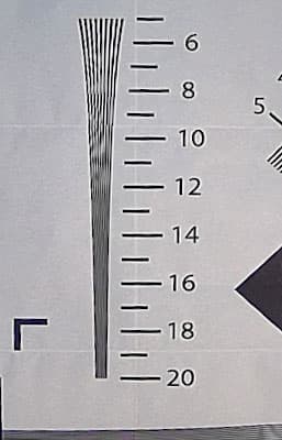 Разрешающая способность видео, снятого регистратором при хорошем свете, достигает 1000 ТВ-линий по горизонтальной стороне кадра в старшем режиме 2K+ (2560×1600). И, «как ни странно», ровно такую же разрешающую способность дает «младший» режим Full HD (1920×1080). Конечно, абсолютно точные цифры получить трудно — мешает выраженный алиасинг (ступенчатость контрастных границ), что указывает на пропуск строк при сканировании сенсора и недостаточно аккуратное масштабирование картинки (типично фотоаппаратный косяк, так снимали все зеркалки прежних поколений).